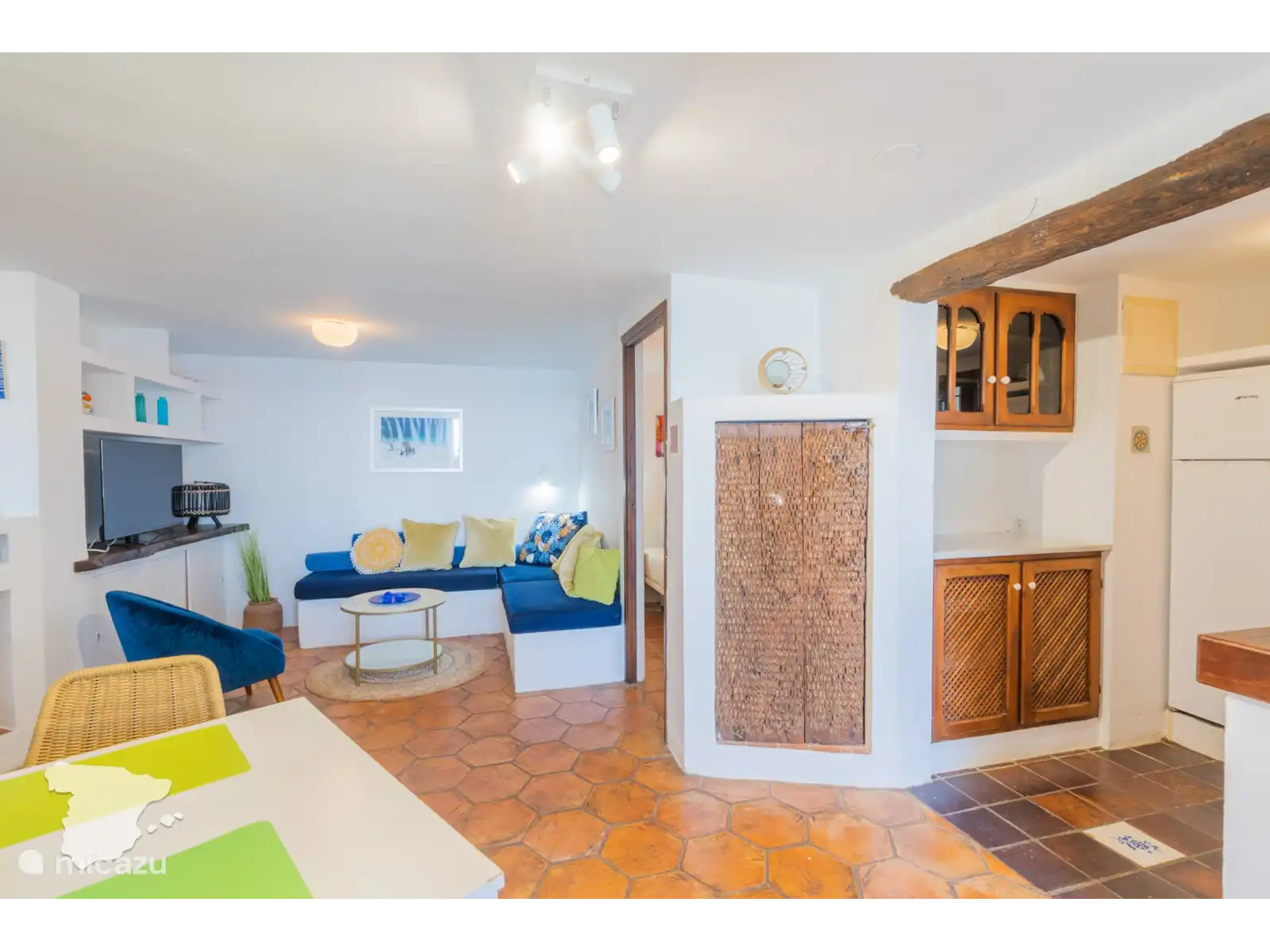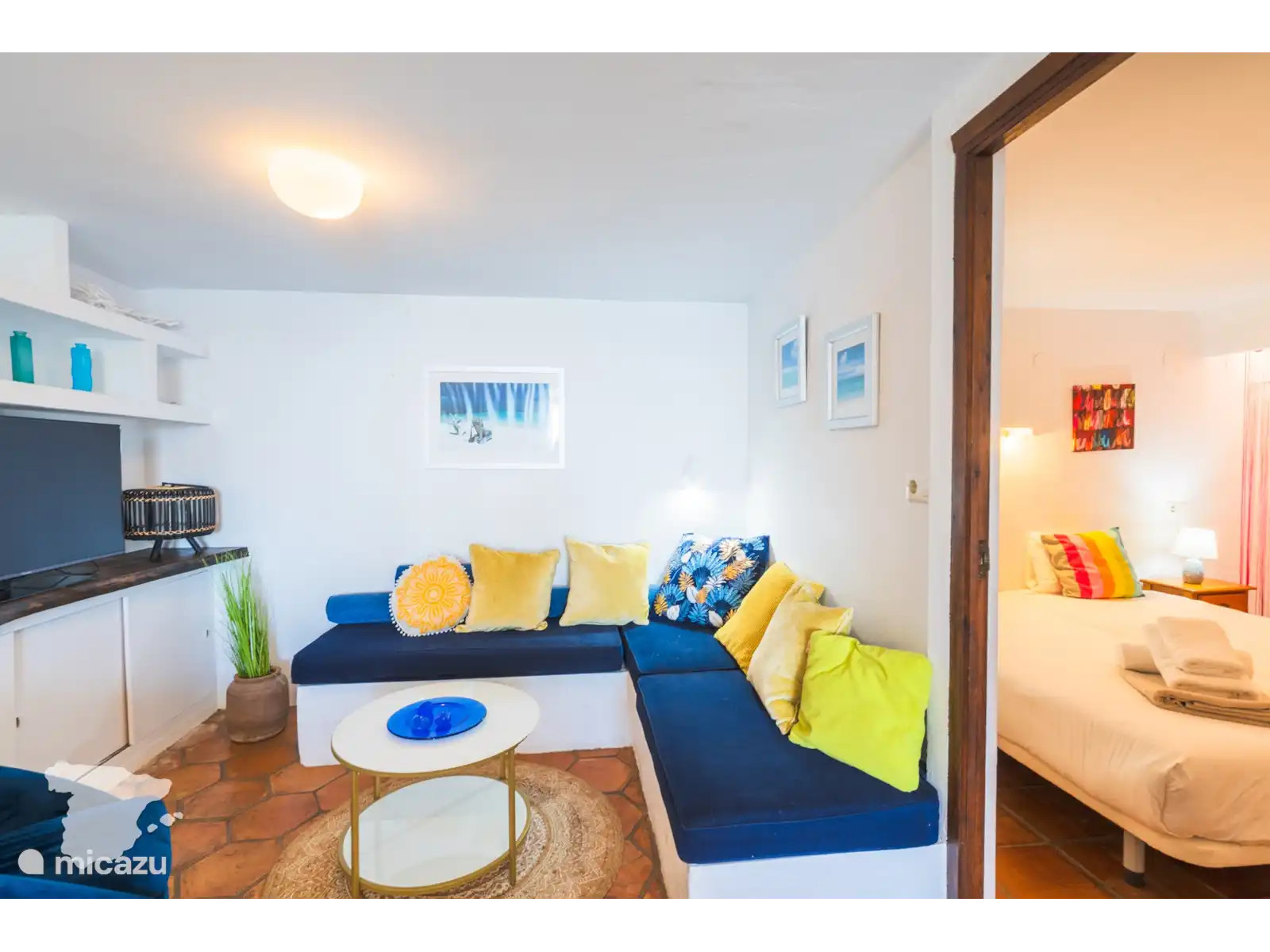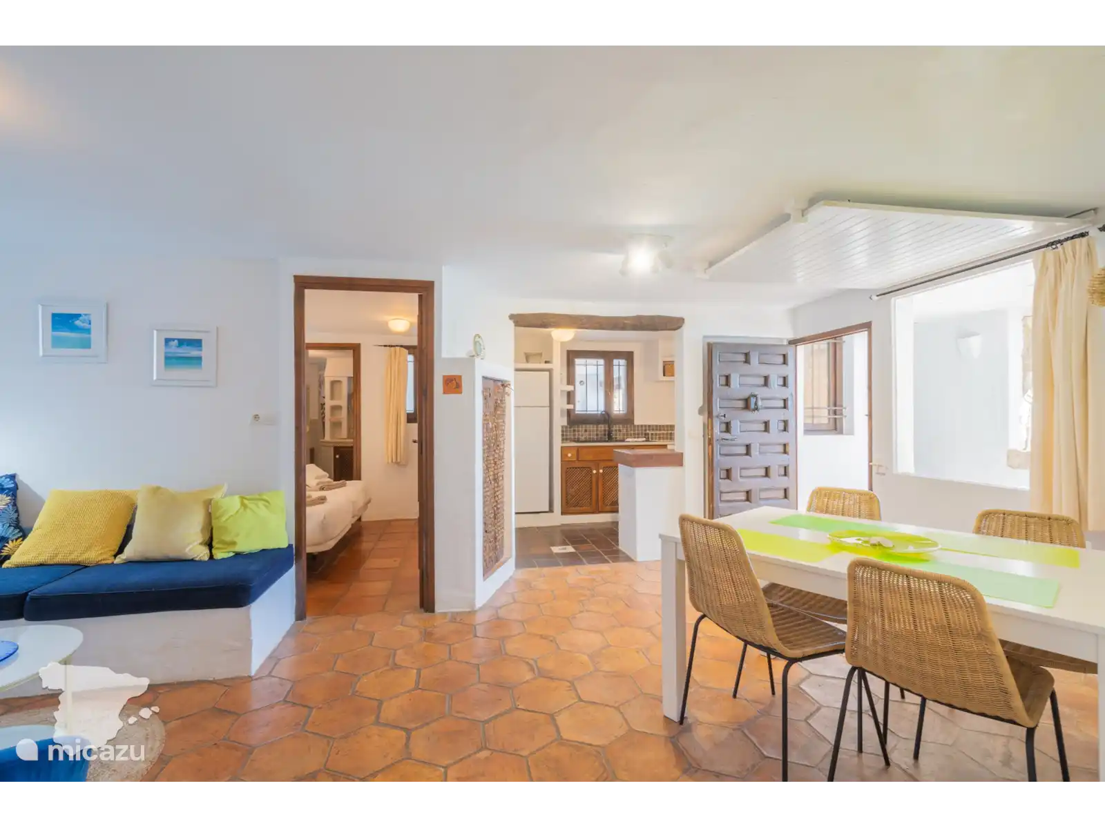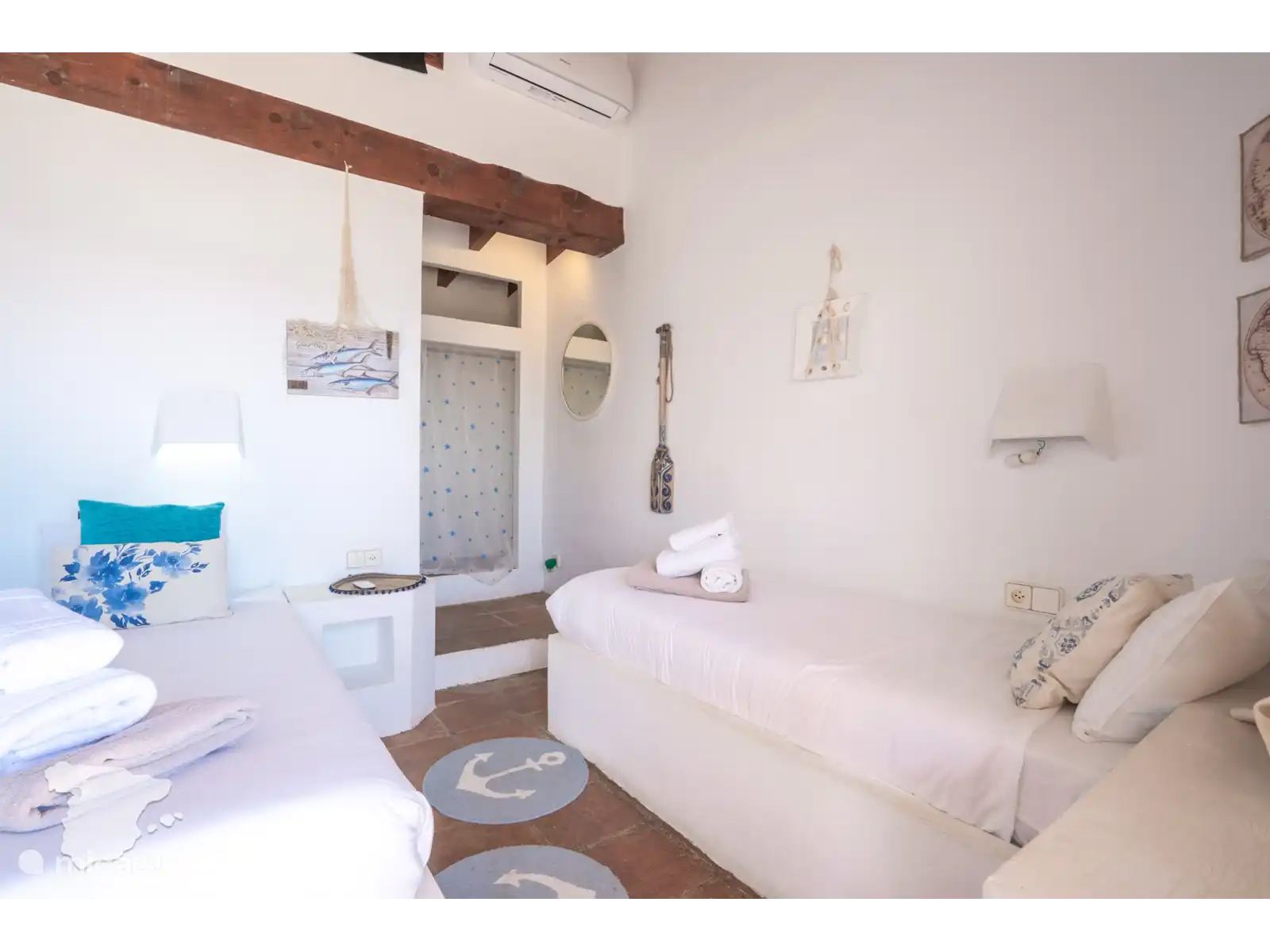 De casita grenzend aan de villa heeft twee slaapkamers en een badkamer. Beide slaapkamers zijn voorzien van airconditioning en hebben toegang tot de tuin. In de ene slaapkamer vindt u een tweepersoonsbed en in de andere slaapkamer twee eenpersoonsbedden. De badkamer is voorzien van toilet, wastafel en douche.