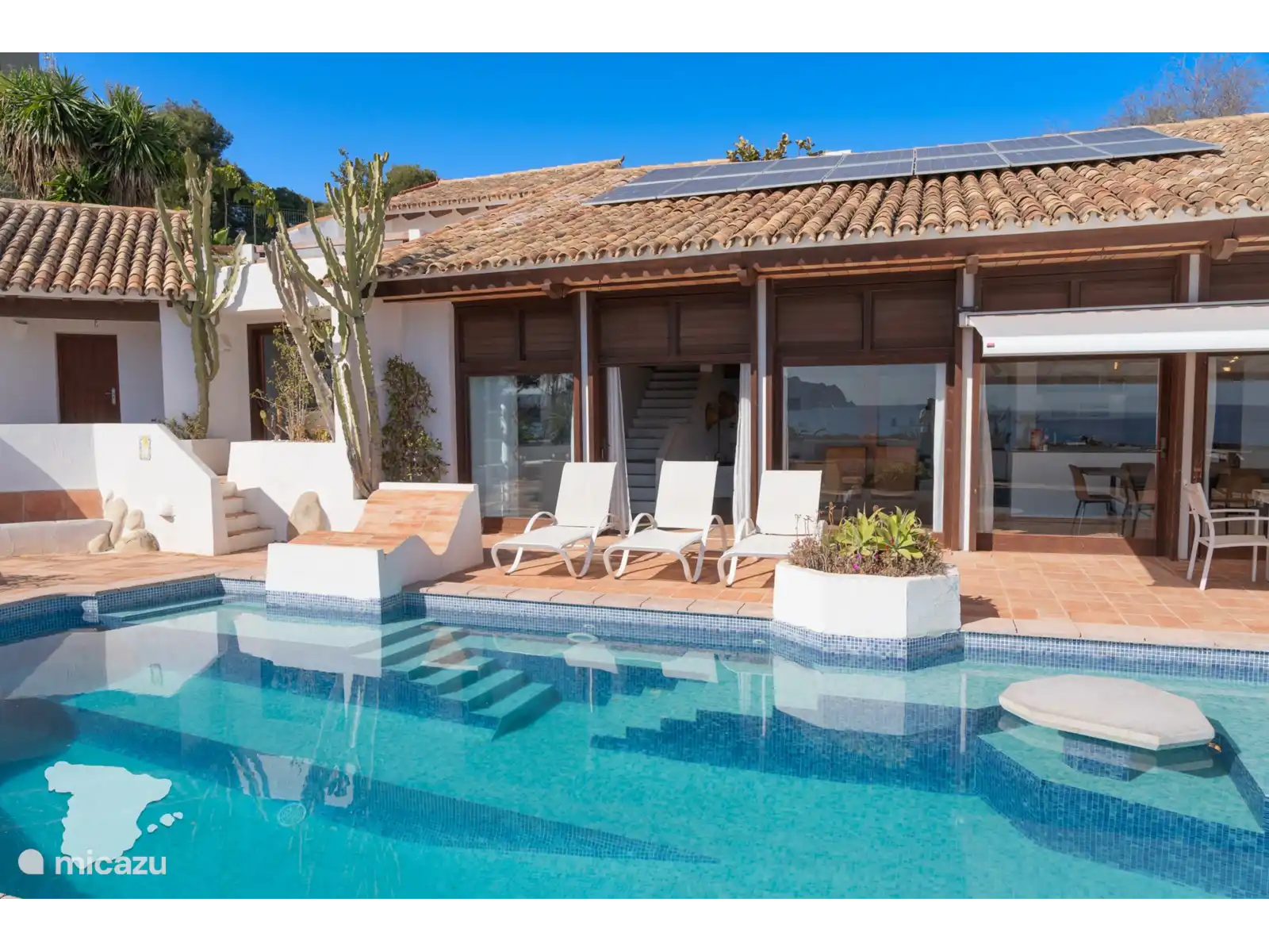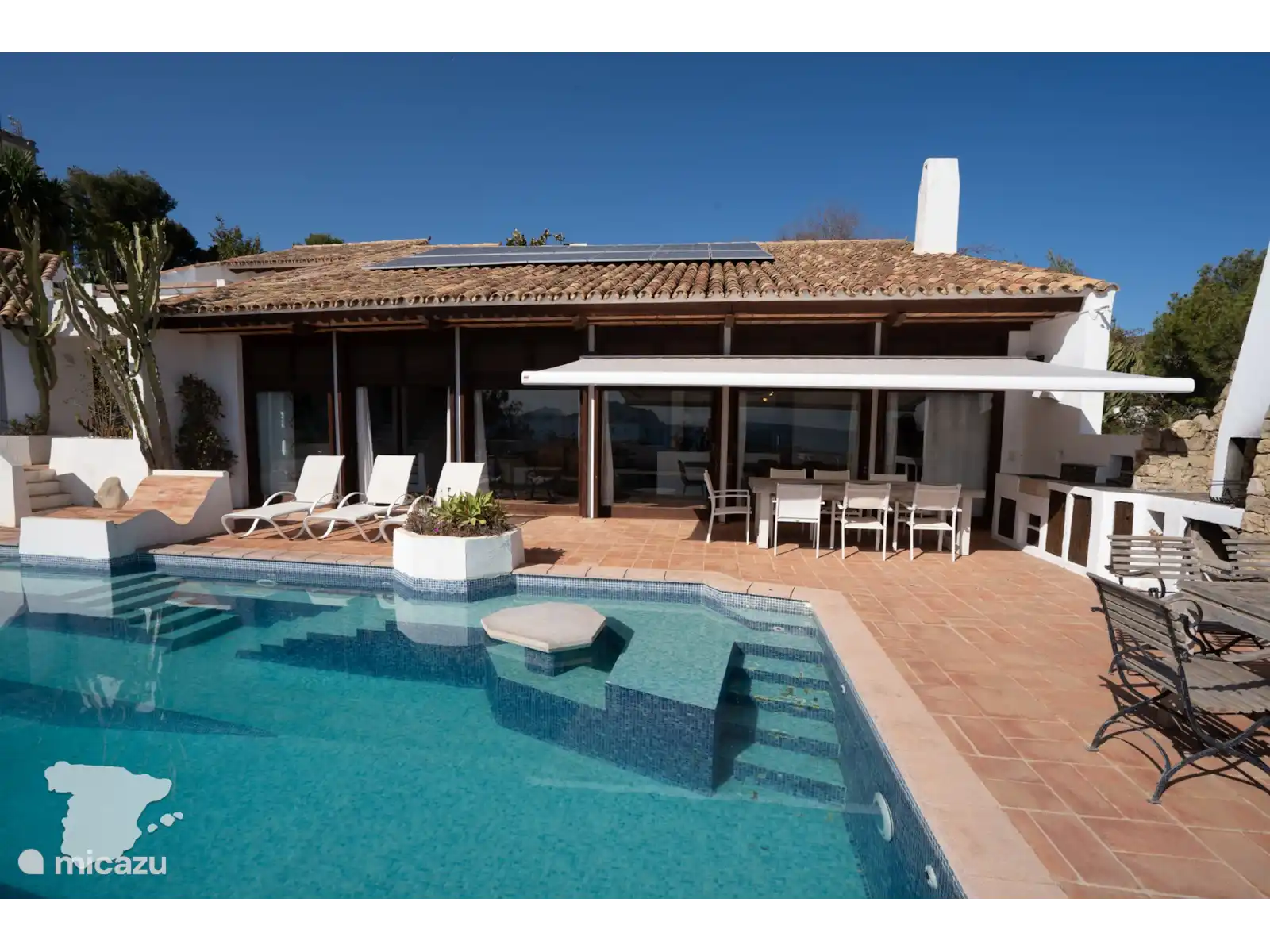 Twee slaapkamers bevinden zich in het hoofdgebouw, de derde en vierde bevinden zich in de vrijstaande casita. Elk van deze slaapvertrekken is voorzien van airconditioning om een milde temperatuur te stimuleren wanneer u klaar bent om te ontspannen van de dagelijkse activiteiten. De twee slaapkamers in de villa hebben beide een tweepersoonsbed en een en-suite badkamer voor privacy en gemak. De badkamer bij de masterbedroom is voorzien van een ligbad / douchecombinatie, toilet, bidet en wastafel. En de andere badkamer heeft een douche, toilet en wastafel. De hoofdslaapkamer heeft toegang tot een terras waar u in alle privacy een royaal bad kunt nemen als een echte Romeinse god met uitzicht over de Middellandse zee!