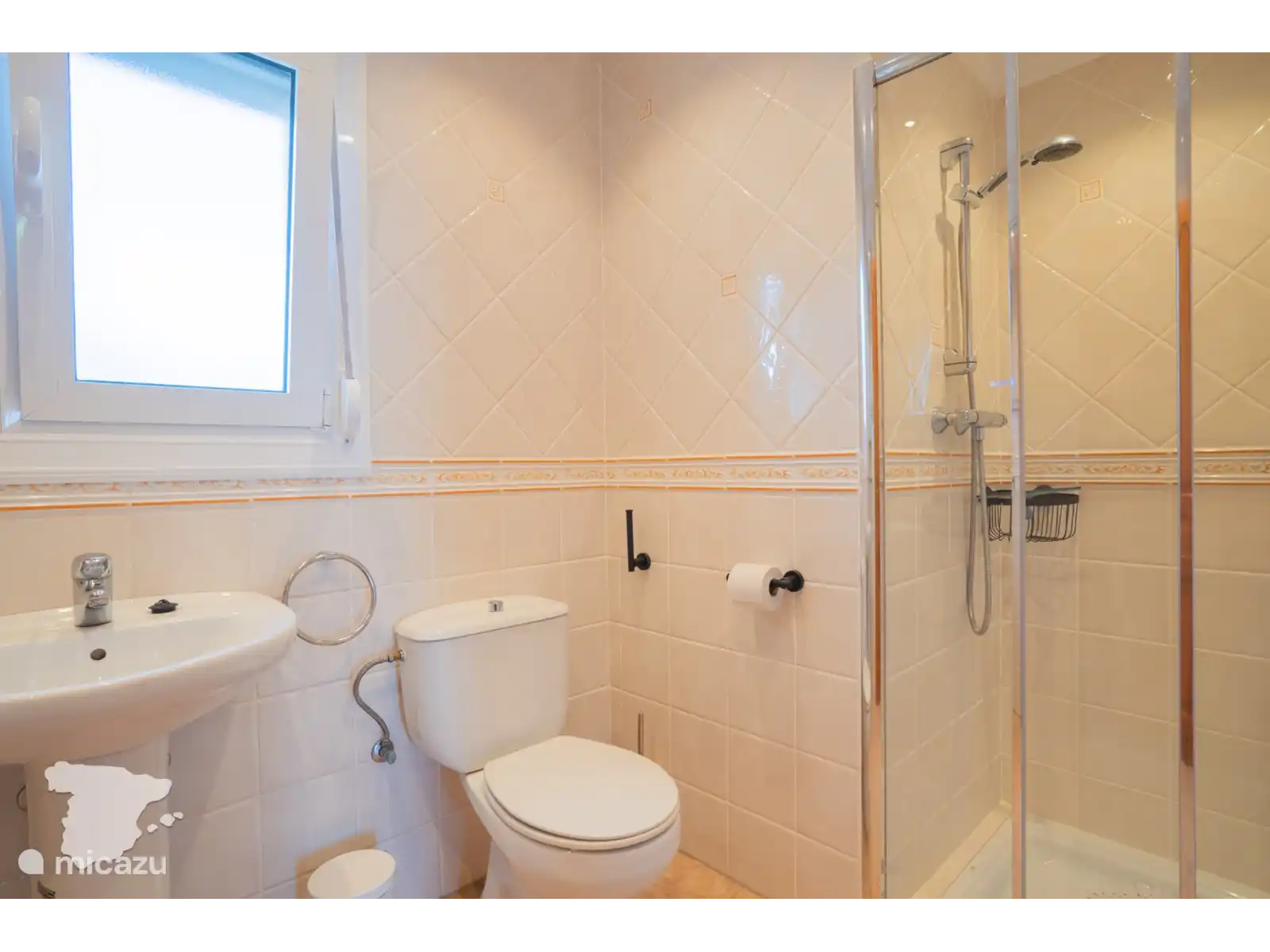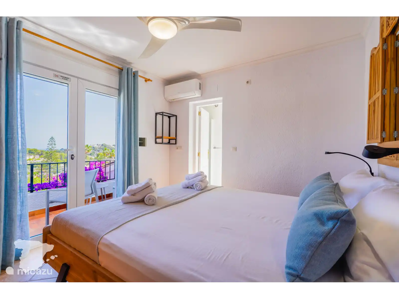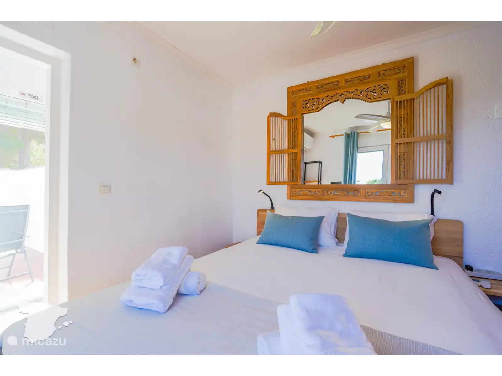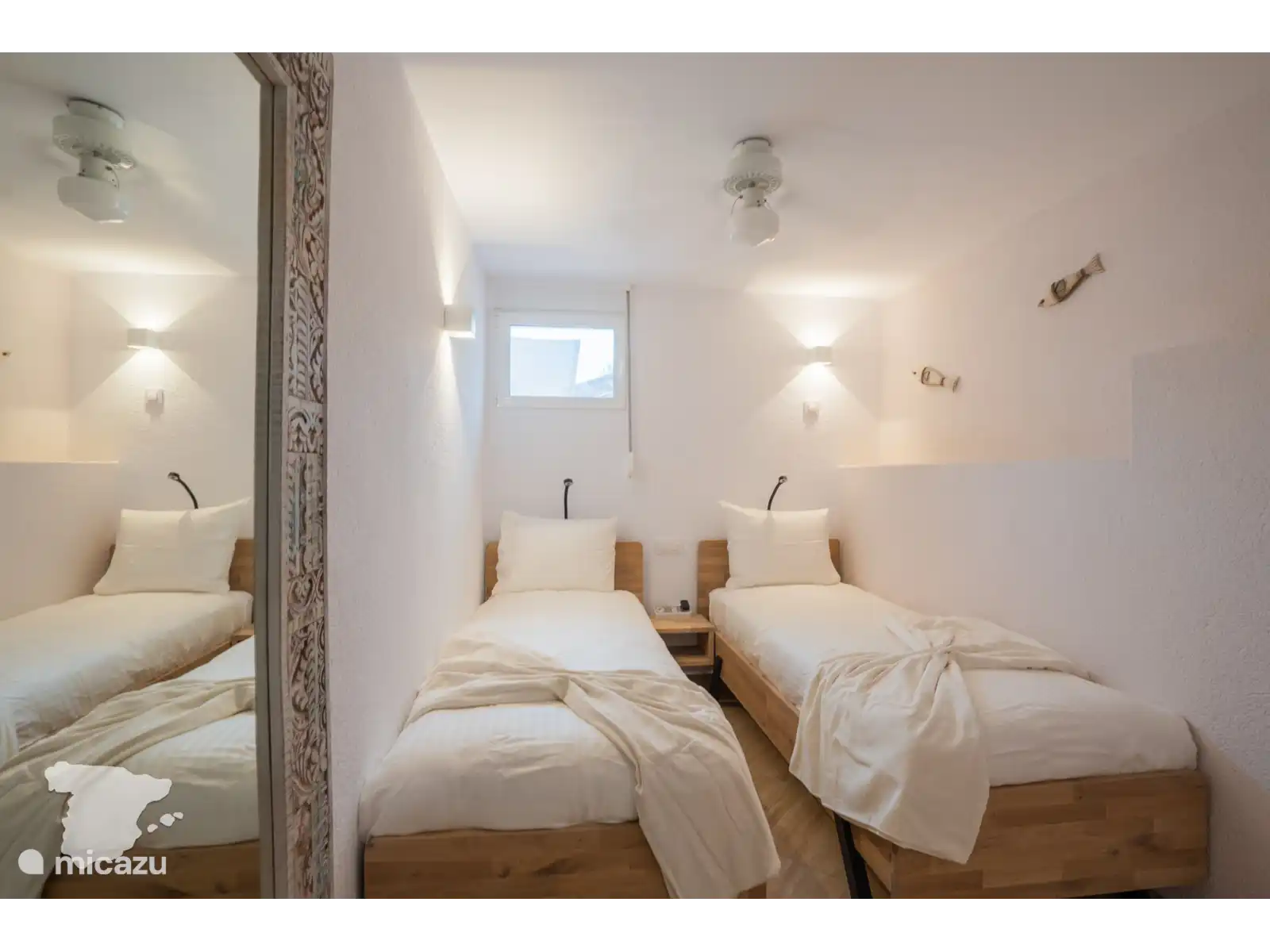 Via de interne trap kunt u ook naar het laagste niveau. Hier vindt u twee slaapkamers: een slaapkamer met een tweepersoonsbed (180x210), Smart TV, plafondventilator en kastruimte, en een tweede slaapkamer met twee individuele bedden (90x210), plafondventilator en kastruimte. Er is een aparte badkamer met douche, wastafel en toilet.