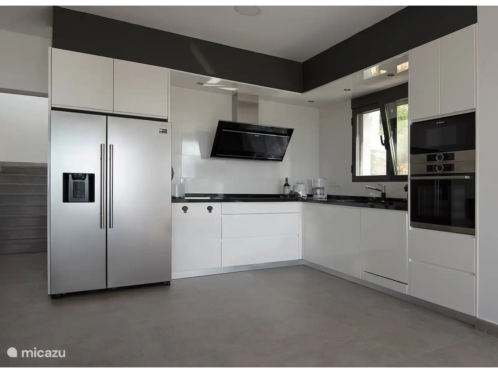 De moderne keuken is voorzien van een grote heteluchtoven, aparte magnetron, Amerikaanse koel-vries combinatie met ijsblokjesmachine en koud water tap, en een inductiekookplaat.