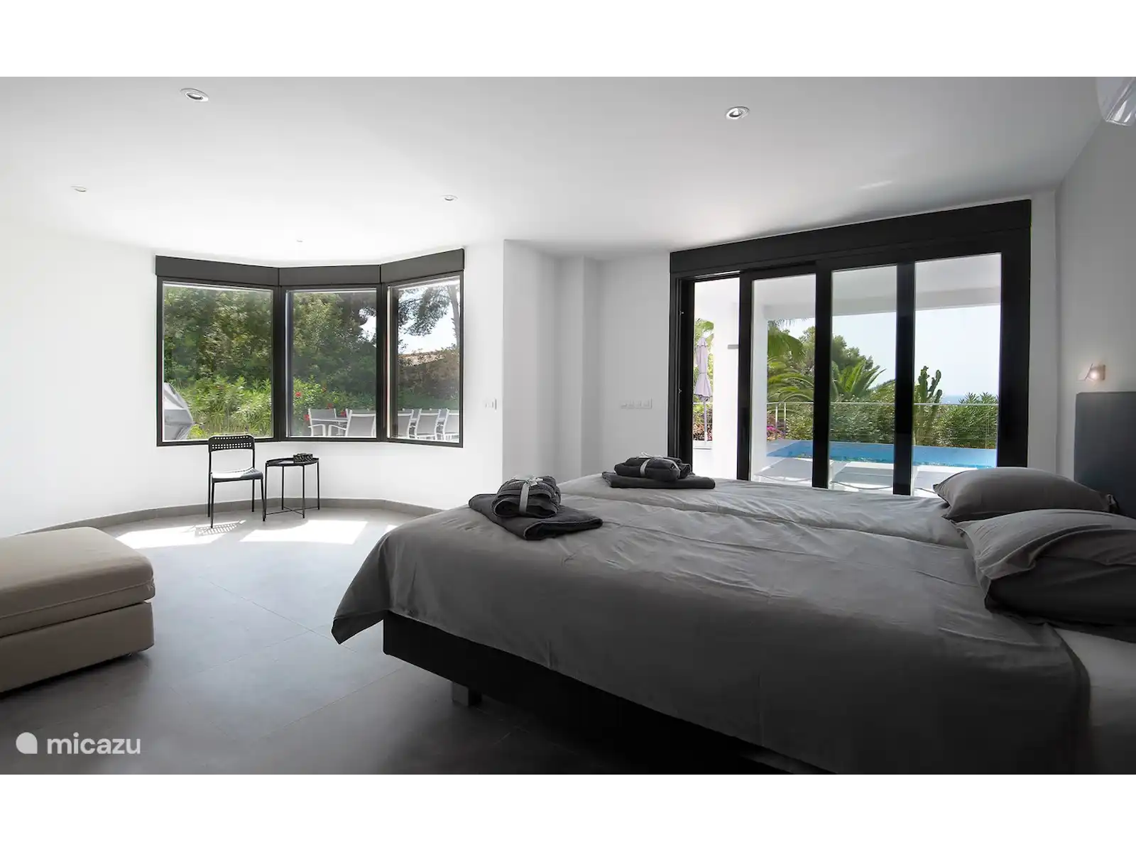 Zowel vanaf het ruime dakterras (65+ m2), de overdekte naya als het zeer ruime terras (160 m2) bij het verwarmde en afgedekte privézwembad is er prachtig zeezicht. Door de enorme raampartijen is dit zicht op iedere lokatie in en om het huis te bewonderen.