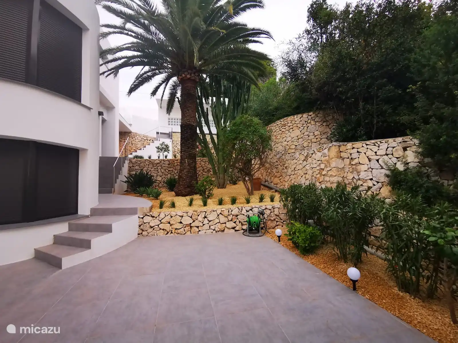 Meerdere auto's vinden hun plek op het eigen afgesloten terrein en rondom het huis. De terrassen rondom het huis en het zwembad zijn ruim en geven op alle momenten van de dag diverse schaduwmogelijkheden. Er is een volwassen tuin met prachtige inheemse planten en palmbomen waaronder het heerlijk ontspannen is.