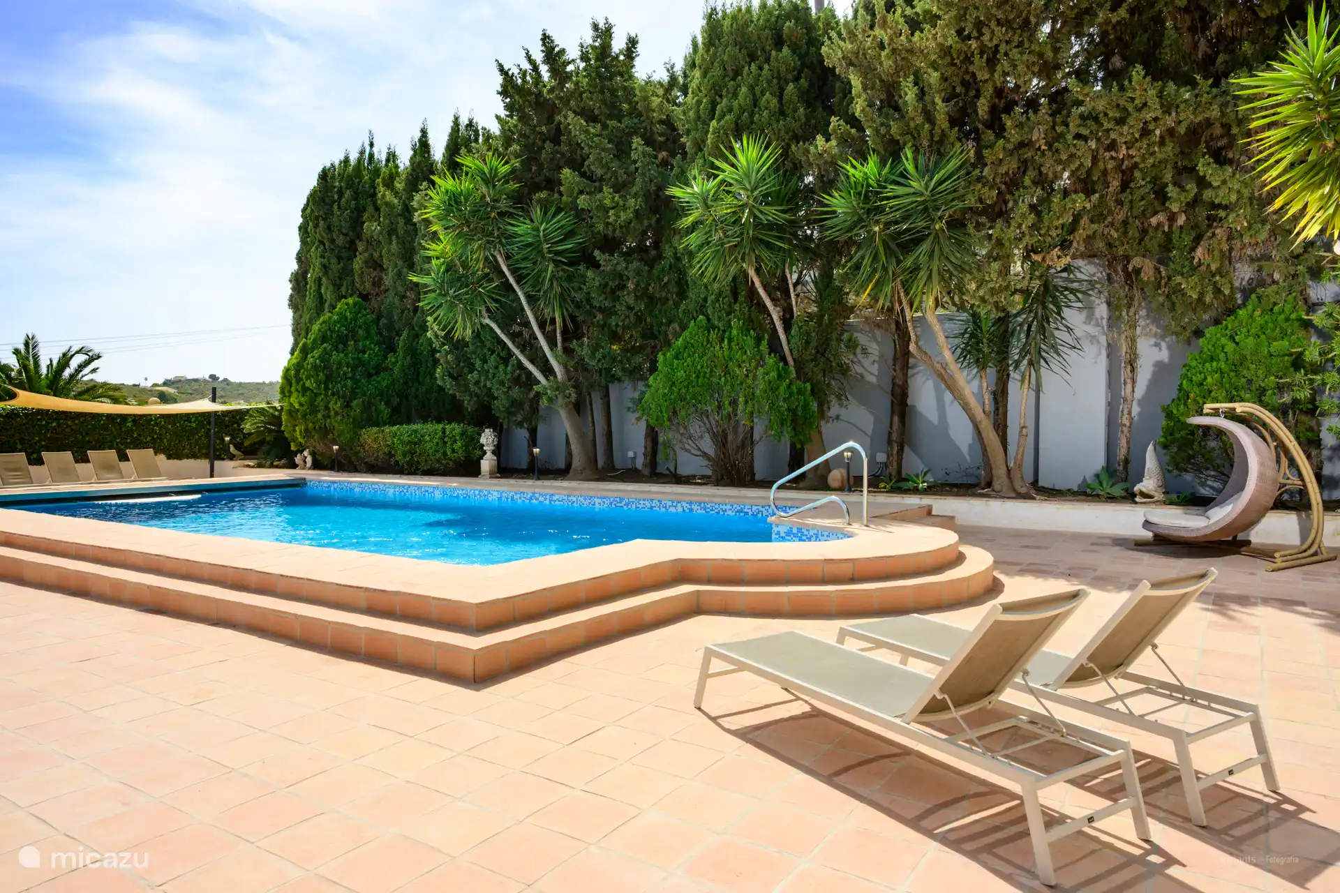 Het grote zwembad (10x5m) is verwarmd en dus ideaal om het hele jaar door te zwemmen.