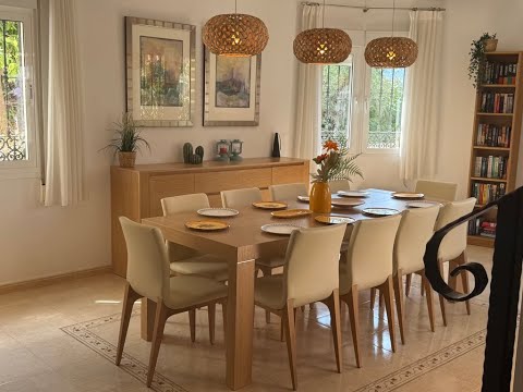 Een interne trap leidt naar de onderste verdieping met een ruime eetkamer voor 10 personen en een volledig uitgeruste keuken. Ook de derde badkamer en slaapkamers 4 en 5 zijn hier. Er is toegang tot de grote tuin met zwembad van 10x5m. Onder de overkapping buiten is een uitgebreide eettafel en hier bevindt zich de buiten WC en douche.