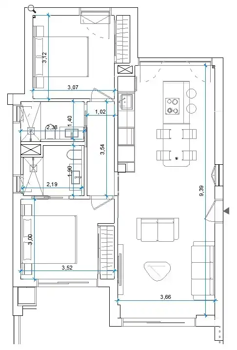Het appartement (gelegen op de eerste verdieping en bereikbaar met lift) is compleet ingericht en beschikt over twee grote slaapkamers, met ieder een eigen badkamer (inclusief toilet). De master bedroom heeft direct toegang tot het balkon. Het appartement kenmerkt zich door de grote ramen en veel licht.