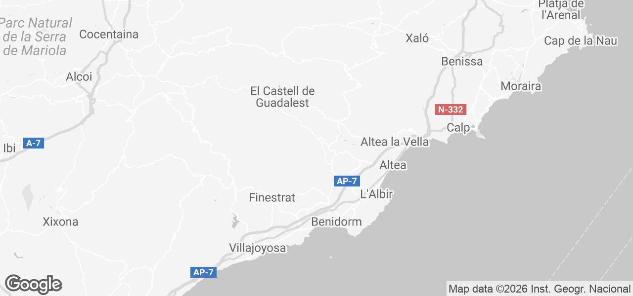 De ligging is uniek – omringd door natuur, maar op korte afstand van pittoreske dorpjes als Polop en Guadalest, en slechts een klein eindje rijden van de stranden van Altea en Benidorm.