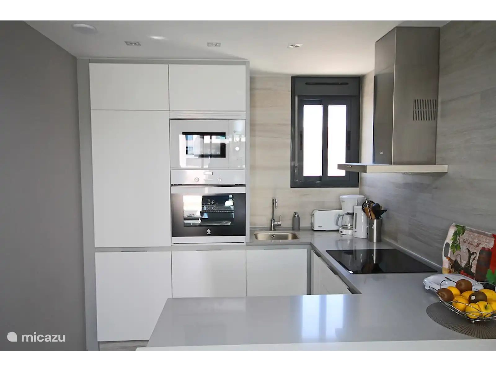 De open keuken met gezellige bar is volledig uitgerust met vaatwasser, combimagnetron, hete luchtoven, koel-vries combinatie, keramische kookplaat, koffiezetapparaat, broodrooster, tostimaker en afzuigkap.