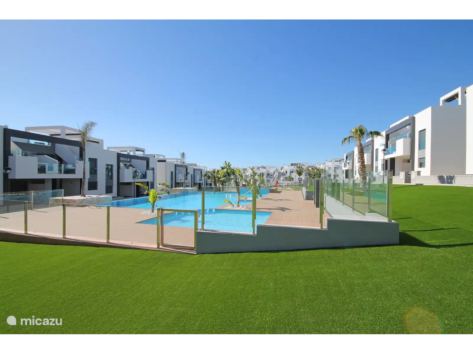 is een heerlijke plek om te verblijven en op een zeer centrale en mooie locatie. Ideaal voor een kort verblijf tijdens uw vakantie en/of voor de lange termijn verblijf in de winter met de juiste faciliteiten en de hele dag zon op het terras. Dit complex is gelegen in één van de nieuwste woonwijken van Punta Prima, slechts 12 minuten lopen van het Punta Prima strand. Alle voorzieningen die u verwacht nodig te hebben, zoals een divers aanbod van winkels, bars, restaurants en supermarkten zijn aanwezig en allemaal op loopafstand.De witte veilige ‘Green Flag’ stranden met azuurblauwe zee van Punta Prima, Playa Flamanca, La Zenia, Cabo Roig, Campo Amor en Torrevieja, liggen in de directe omgeving. Tevens in de nabijheid liggen de diverse professionele golfbanen zoals Las Ramblas, Villa Martin, Las Colinas, Campoamor en Vista Bella golf ( op 15 kilometer).Het grootste winkelcentrum van Alicante La Zenia Boulevard (160.000 m2) ligt slechts 5 minuten rijden van ons resort Oasis Beach en alle voorzieningen zoals supermarkten, restaurants, bars en bushalte zijn op loopafstand. Een bezoek aan de lokale markt om uw groenten en fruit, schoenen, tassen en kleding te kopen kan worden gedaan op zaterdag in Playa Flamenca en op vrijdag in Torrevieja.