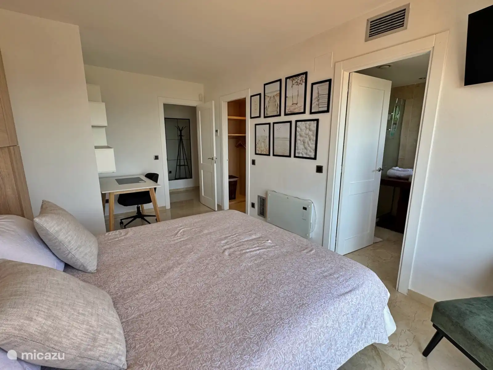 - slaapkamer met queen size bed (van 200 bij 150cm) en televisie