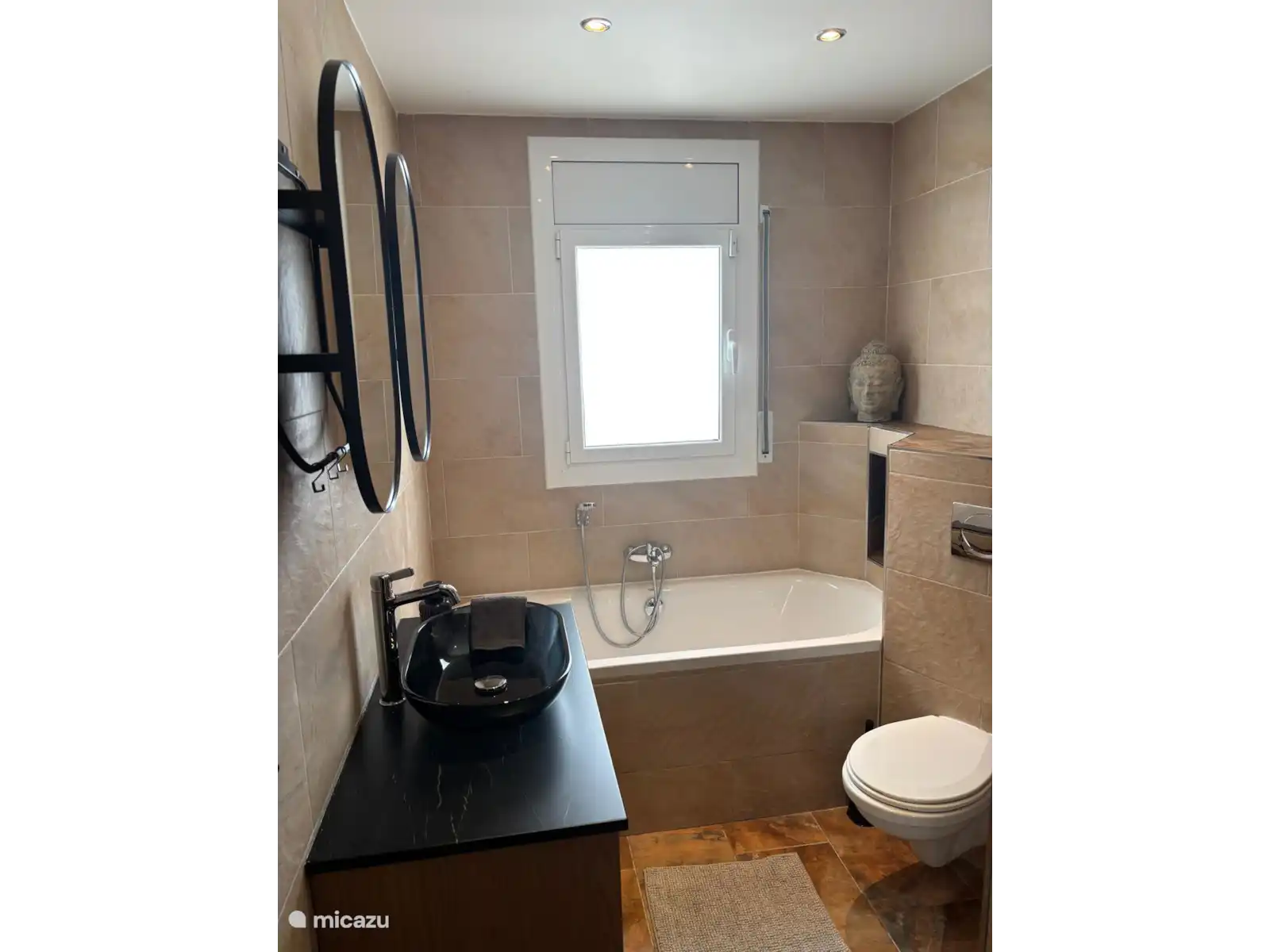 De woning beschikt over 3 slaapkamers, een badkamer met ligbad, aparte douche en toilet en een separaat 2e toilet. Aan de achterzijde van het huis bevindt zich nog een buiten douche.