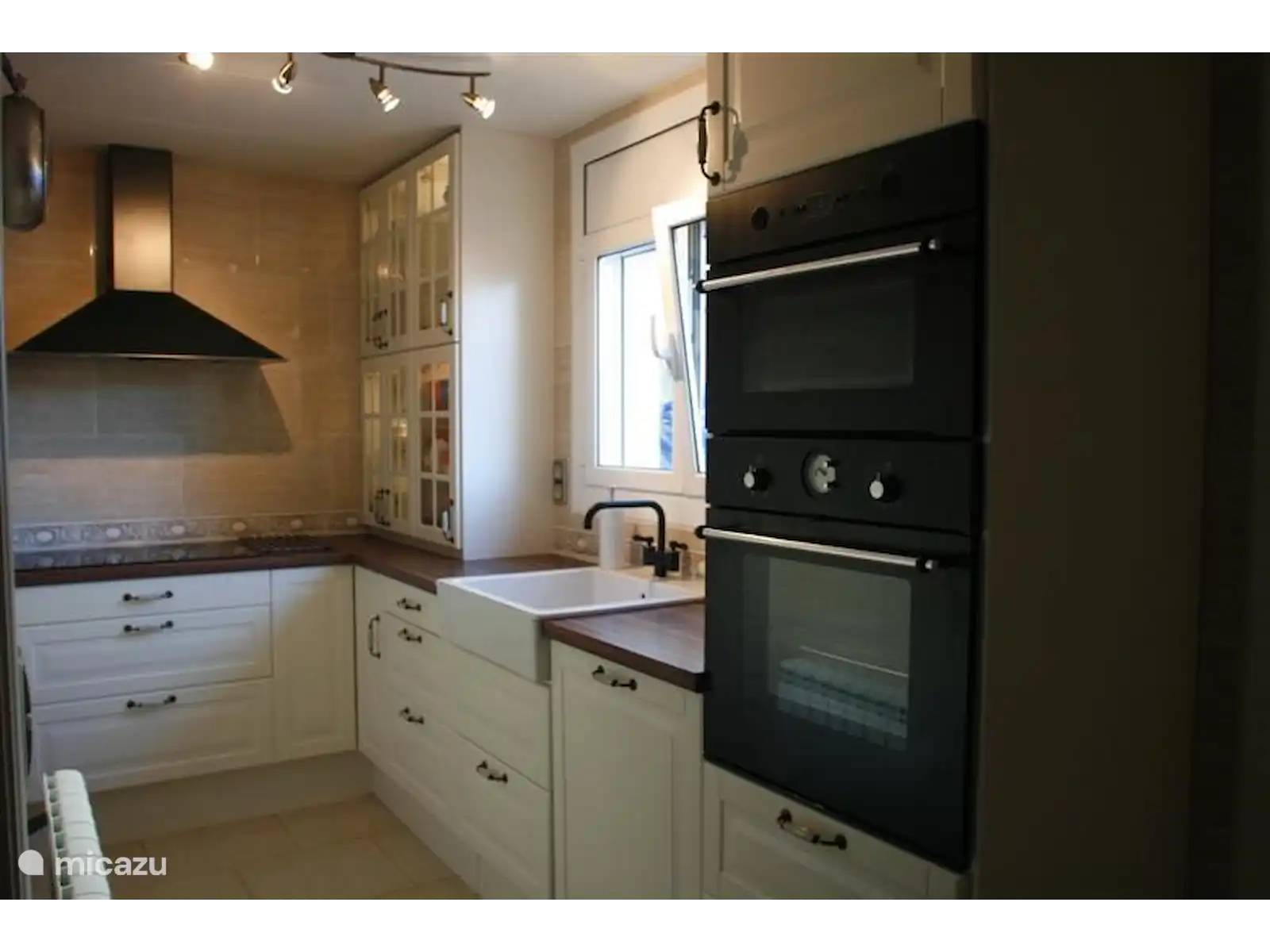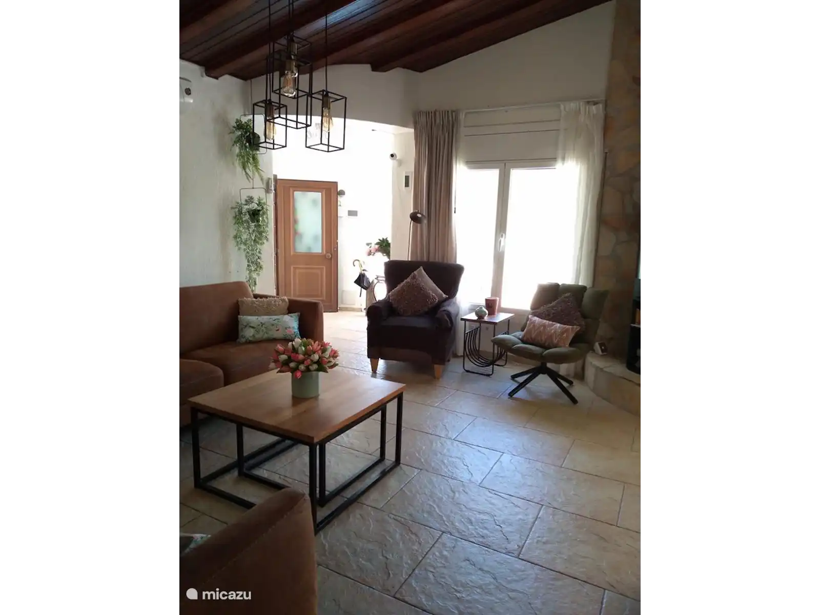 De woonkamer biedt een relaxtie sfeer met luxe openhaard en royale zithoek. Gezellig koken kan in de volledige uitgereuste keuken voorzien van alle gemakken zoals een vaatwasser, oven, magnetron en Nespresso apparaat.