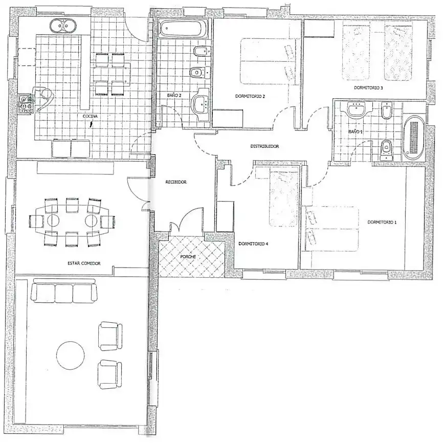 De woning zelf is gelijkvloers met een heerlijk ruime woonkamer met veel lichtinval een grote eettafel en een fijne zithoek met smart-TV, slaapbank en een schuifpui naar het balkon. De ruime leefkeuken is van alle gemakken voorzien met een koelkast, magnetron met grill, vaatwasser, wasmachine, heteluchtoven en kookplaat met afzuigkap. Daarnaast mogen de koffiezetter, het Nespresso-apparaat, de waterkoker en broodrooster niet ontbreken. De keuken geeft toegang aan het patioterras met rotswand aan de achterzijde van de woning. De hal geeft toegang tot 4 2-persoonsslaapkamers, waarvan er 2 zijn voorzien van een 2-persoonsbed en de andere 2 kamers hebben 2 1-persoonsbedden. De master bedroom heeft een badkamer en-suite met douchecabine, toilet en wastafelmeubel. De 2e badkamer heeft een ligbad/douche, toilet en wastafelmeubel.