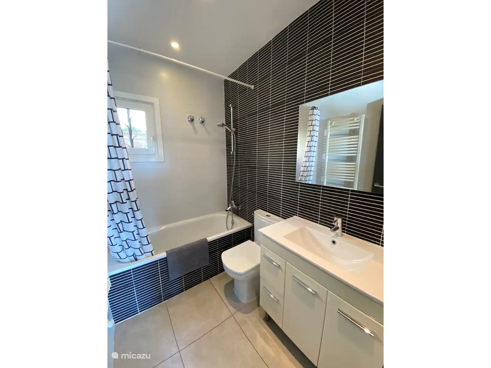 Op de begane grond vindt u een gastvrije inkomhal, een lichte woon-eetkamer met een gezellige open haard en een volledig uitgeruste keuken. Twee slaapkamers, een met een tweepersoonsbed en een met twee eenpersoonsbedden, plus een complete badkamer met bad. Het lagere niveau verrast u met een luxe master suite met een groot tweepersoonsbed en een complete badkamer met douche en bad. Een kleine kantoorruimte biedt een productief hoekje en directe toegang tot de weelderige tuin zorgt voor een naadloos binnen-buitenleven. Buiten nodigen het terras, een volledig omheinde tuin en een barbecue uit tot moeiteloos leven in de buitenlucht.