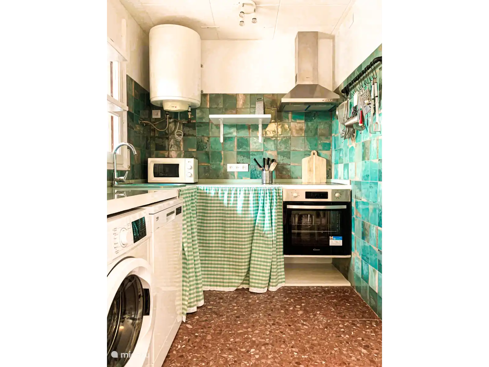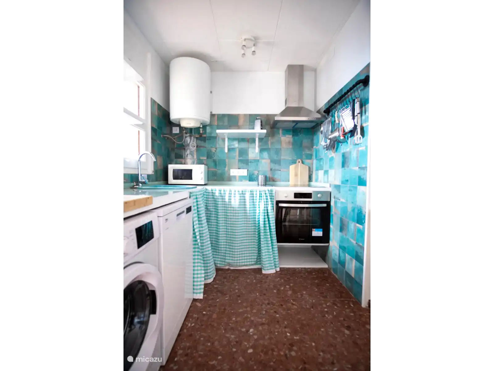 De keuken met mediterrane uitstraling is uitgerust met vaatwasser, elektrische grill, keramische kooktoestelle, koelkast met vriescompartiment, 2 koffiemachines (filter en Nespresso), broodrooster, waterkoker, magnetron en wasmachine.