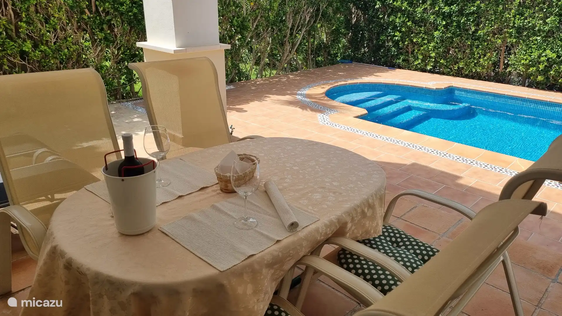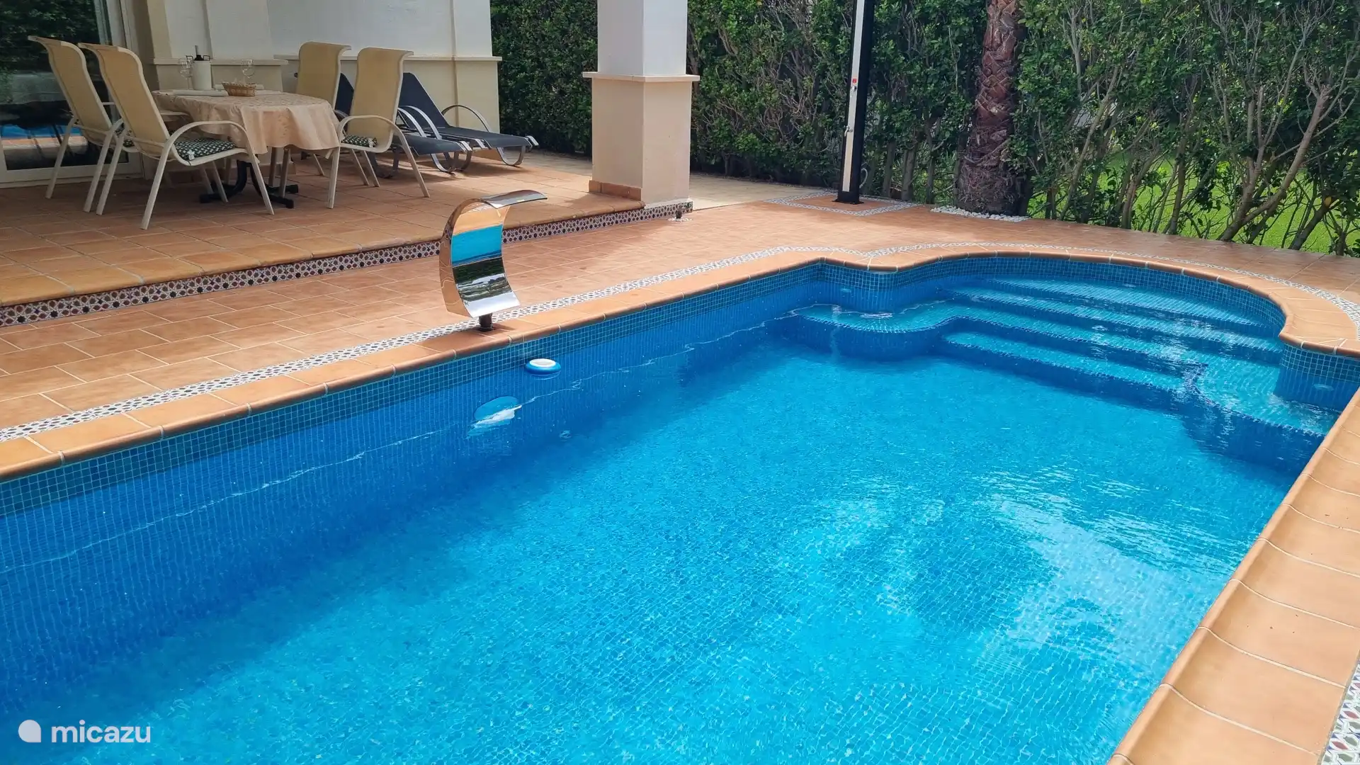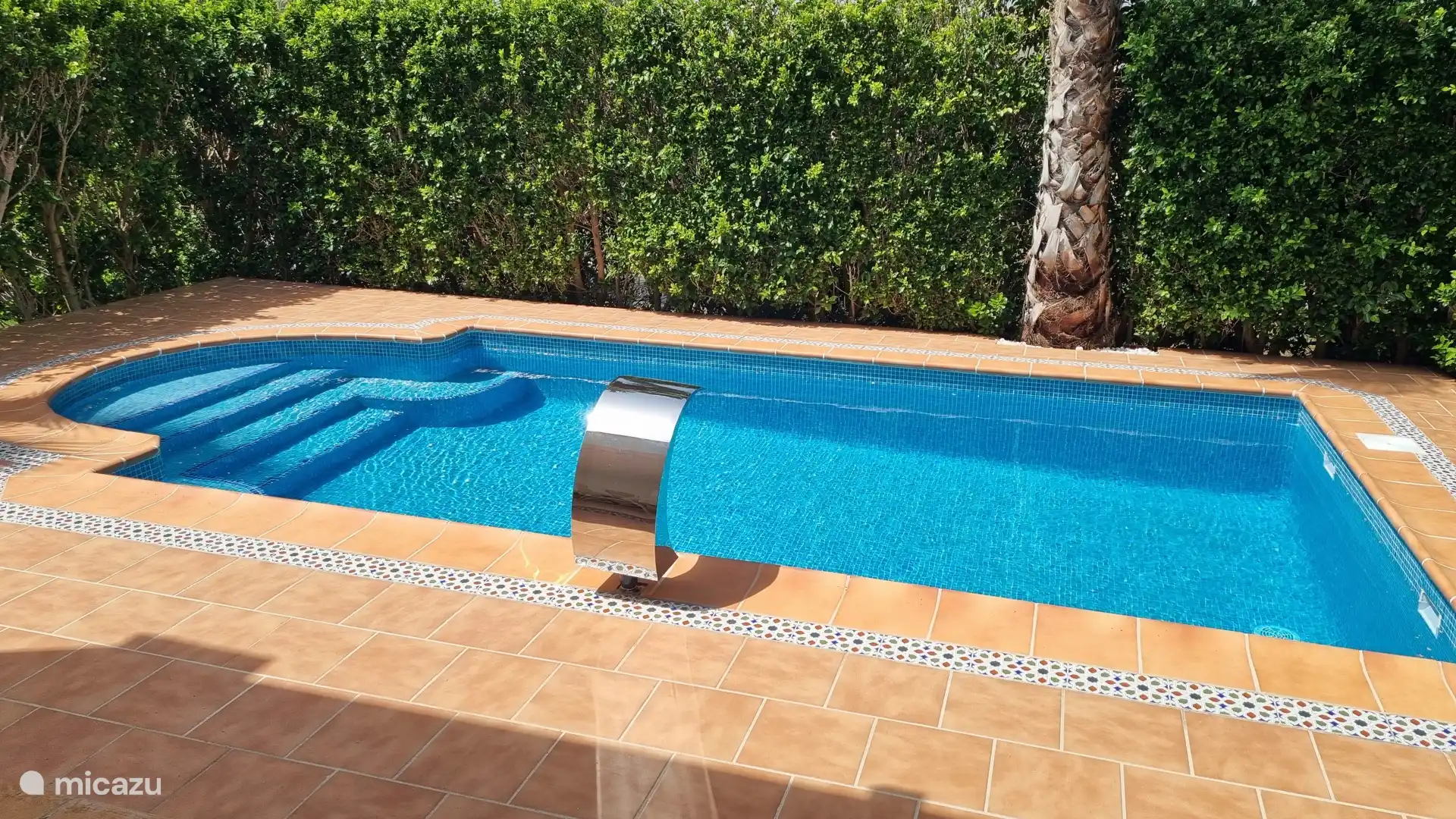In de tuin bevindt zich het privé zwembad met buitendouche.