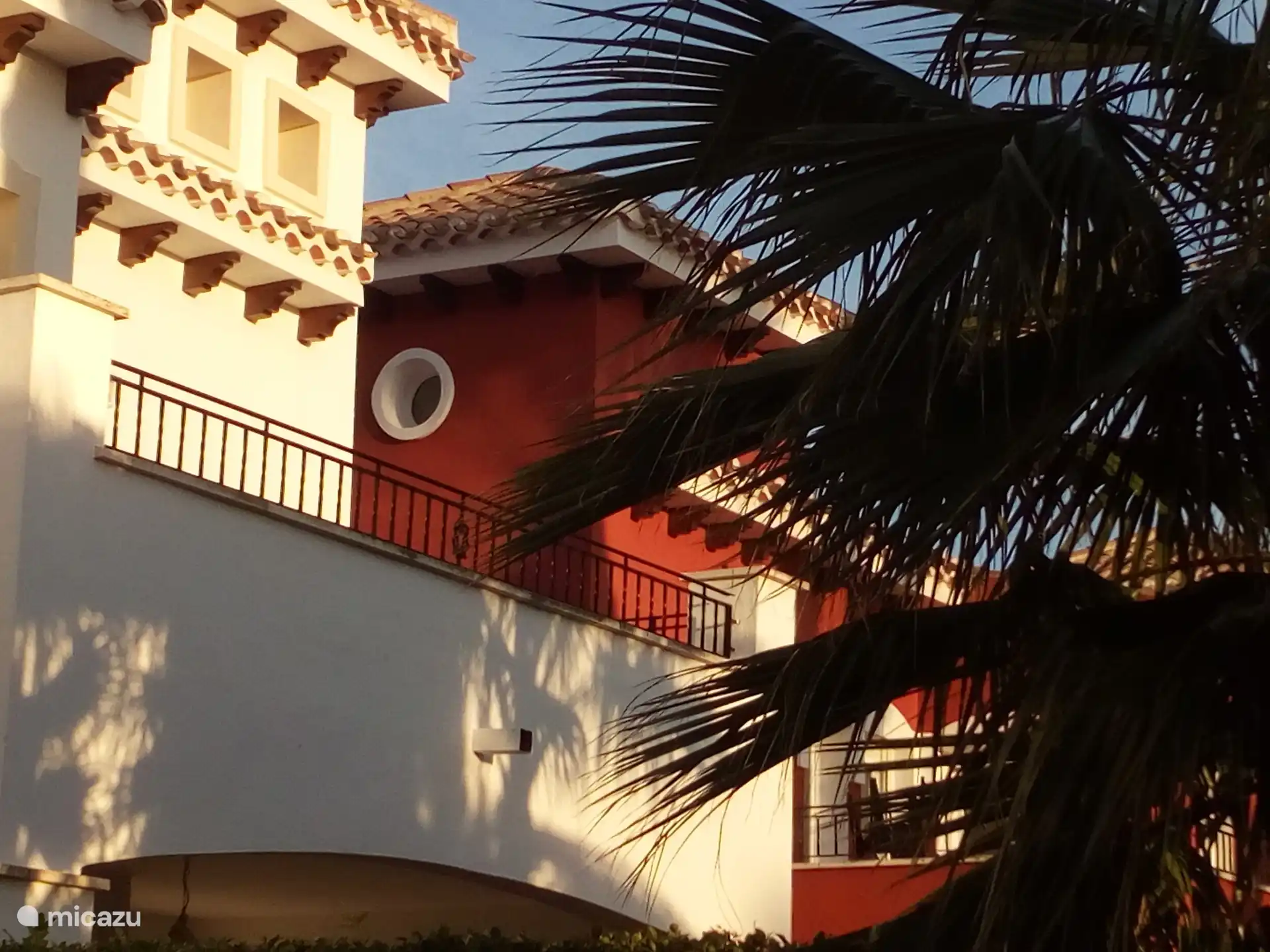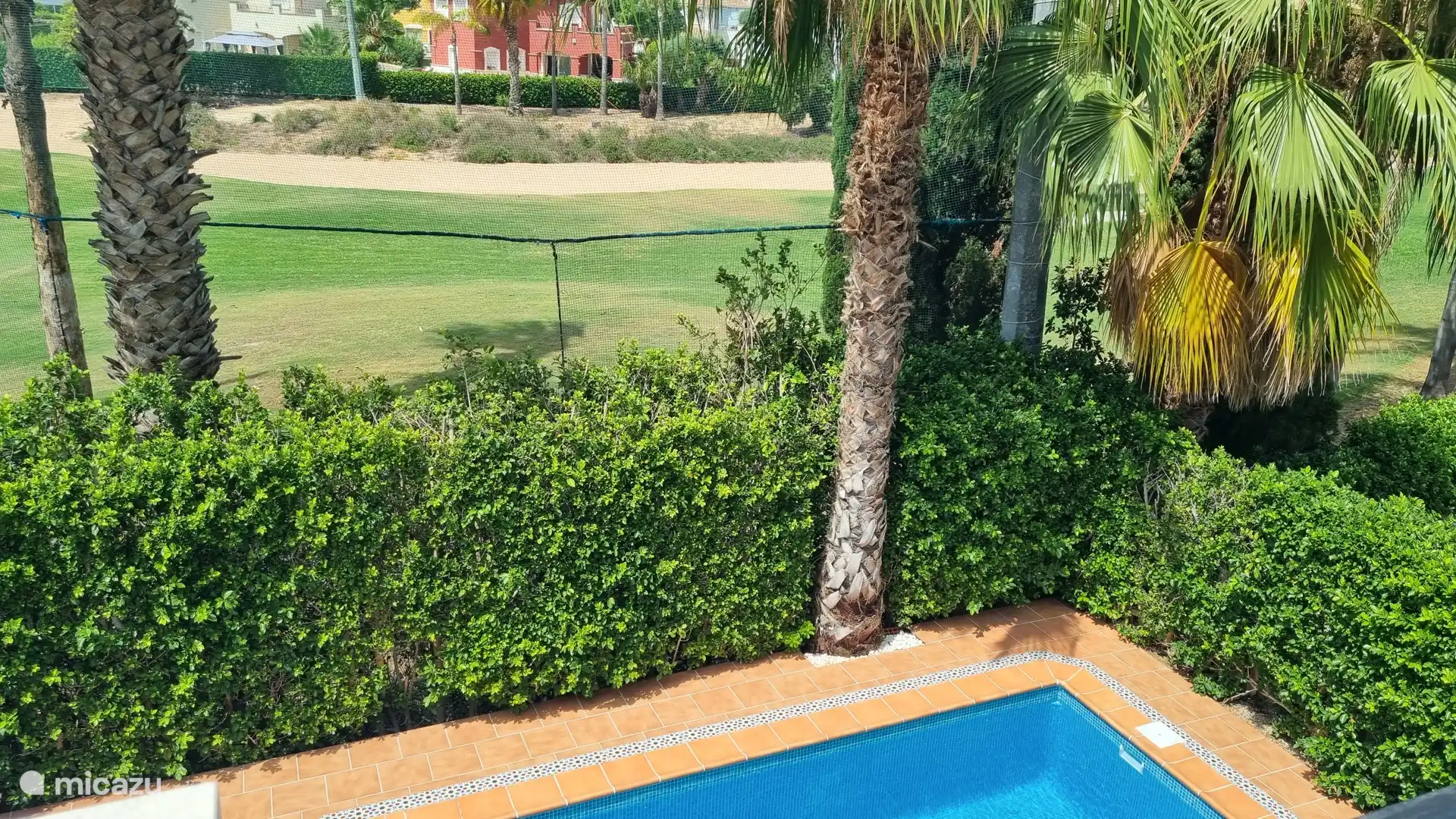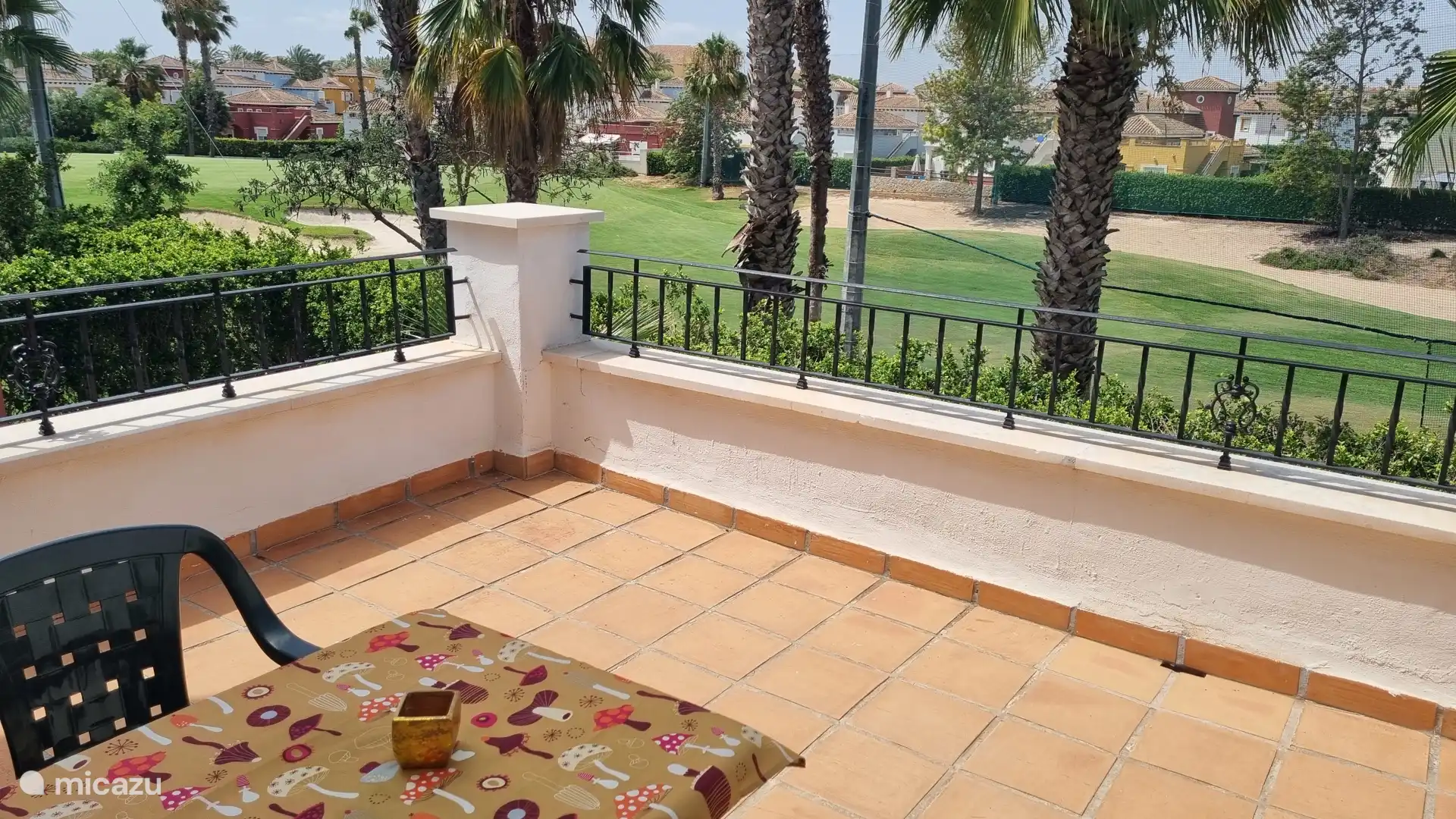 Vanaf de galerij heeft u toegang tot het zonneterras met een prachtig uitzicht op de golfbaan en de palmbomen.
