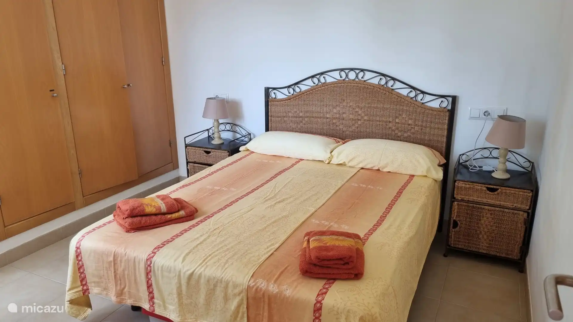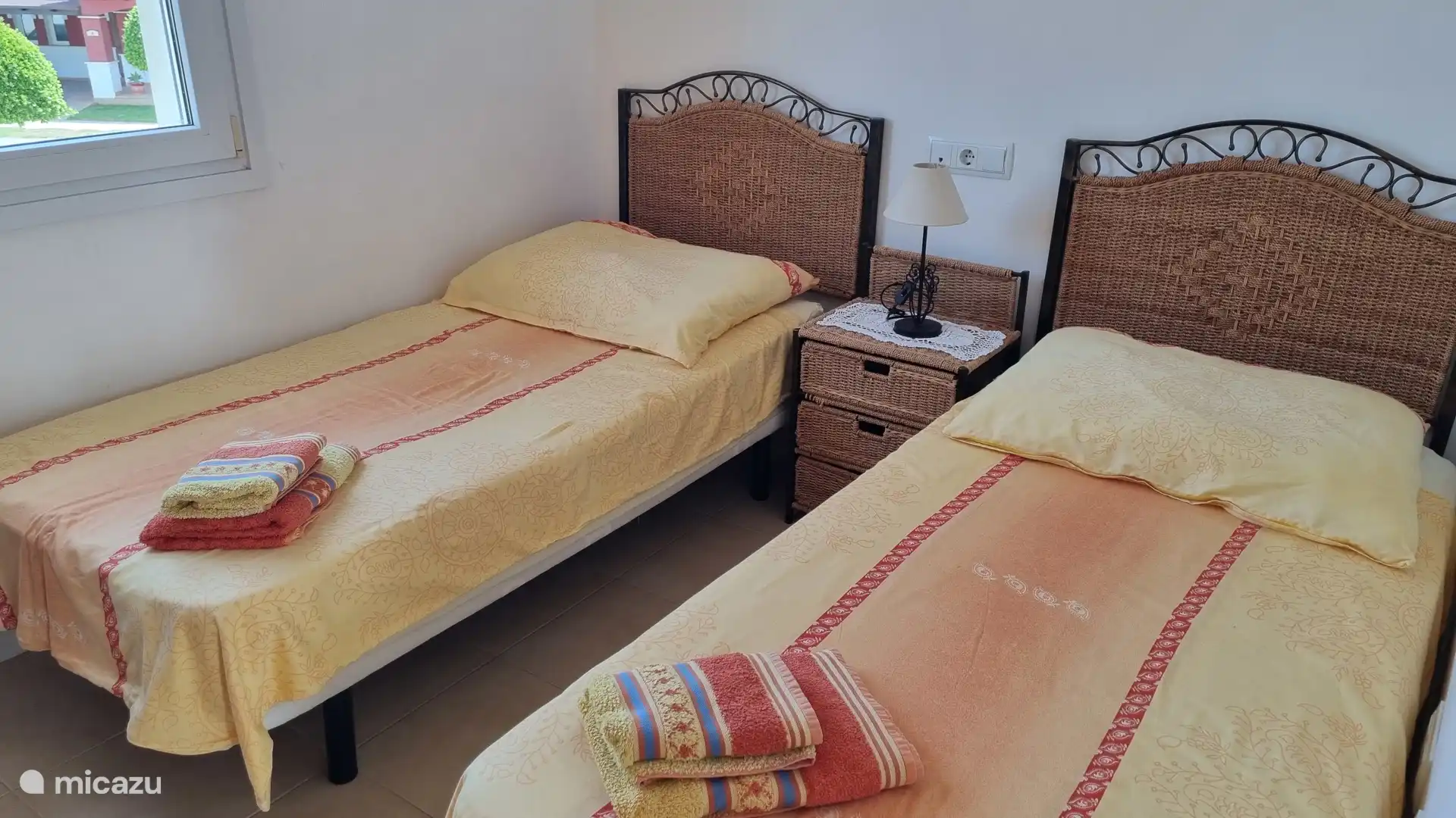 Op de 1e verdieping zijn een tweepersoonsslaapkamer met airconditioning en plafondventilator en een kamer met 2 eenpersoonsbedden met plafondventilator, daartussen bevindt zich de badkamer met raam.