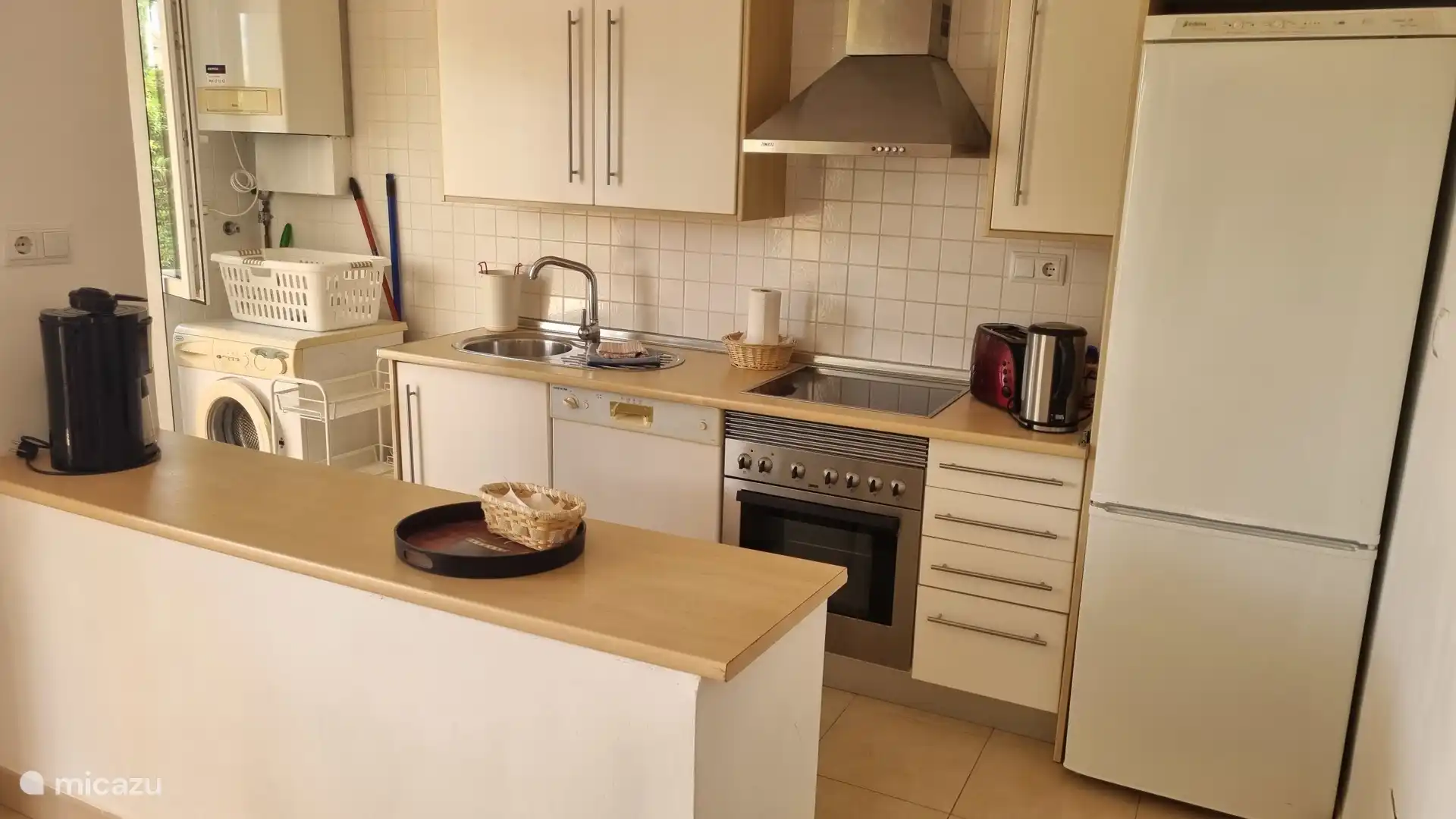 Onze villa is gelegen in een groene oase. Het huis heeft op de begane grond een woonkamer en een open volledig uitgeruste keuken, verder een toilet.
