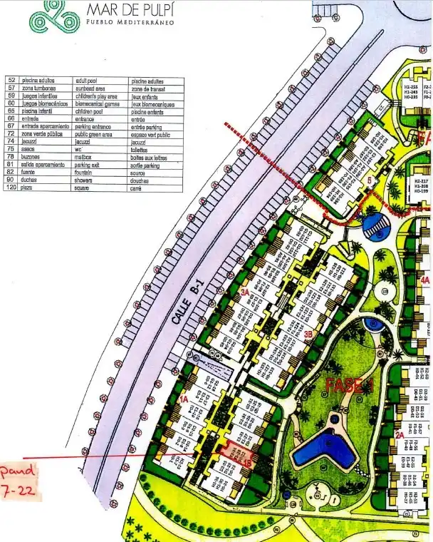 Het appartement ligt in fase 7, ‘Los Narcisos’ genaamd. Fase 7 ligt op wandelafstand van het strand. Er is in de gezamenlijke tuin een zwembad, een kinderbad, een zonneweide, jacuzzi. Er is ook kinderspeeltuin. Het geheel straalt een gevoel van rust, luxe en vakantie uit.
