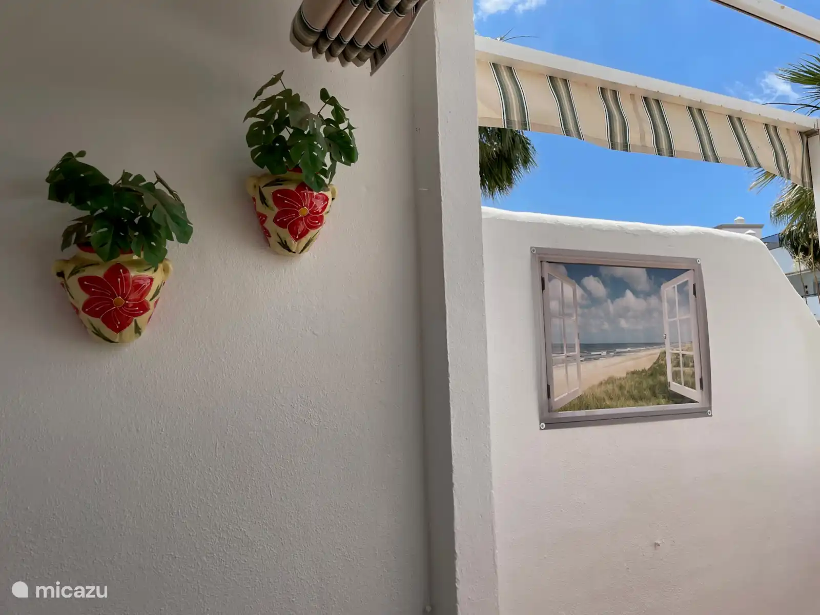 Het terras is voorzien van een tuinset met stoelen en tuinbank en ook een loungebank. Een gezellig ontbijtje, of gewoon relaxen op het terras, met uitzicht op de fraaie binnentuin met zwembad. Indien gewenst, bieden de zonneschermen schaduw.