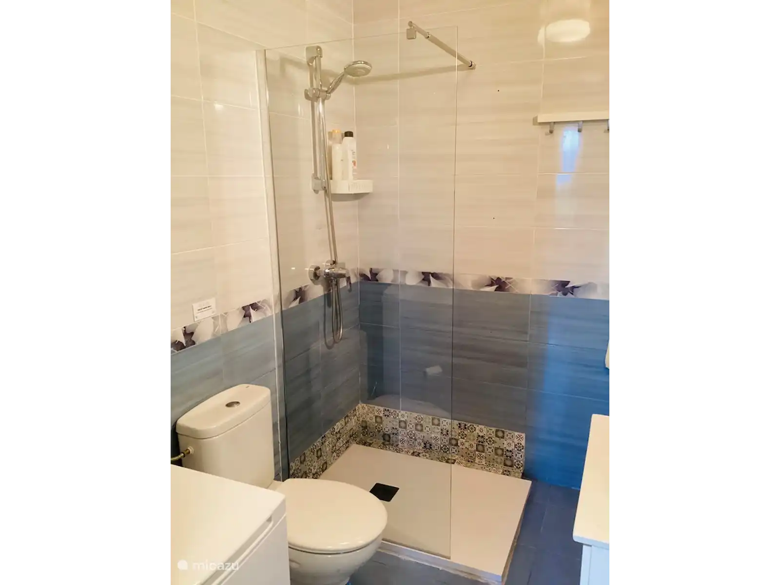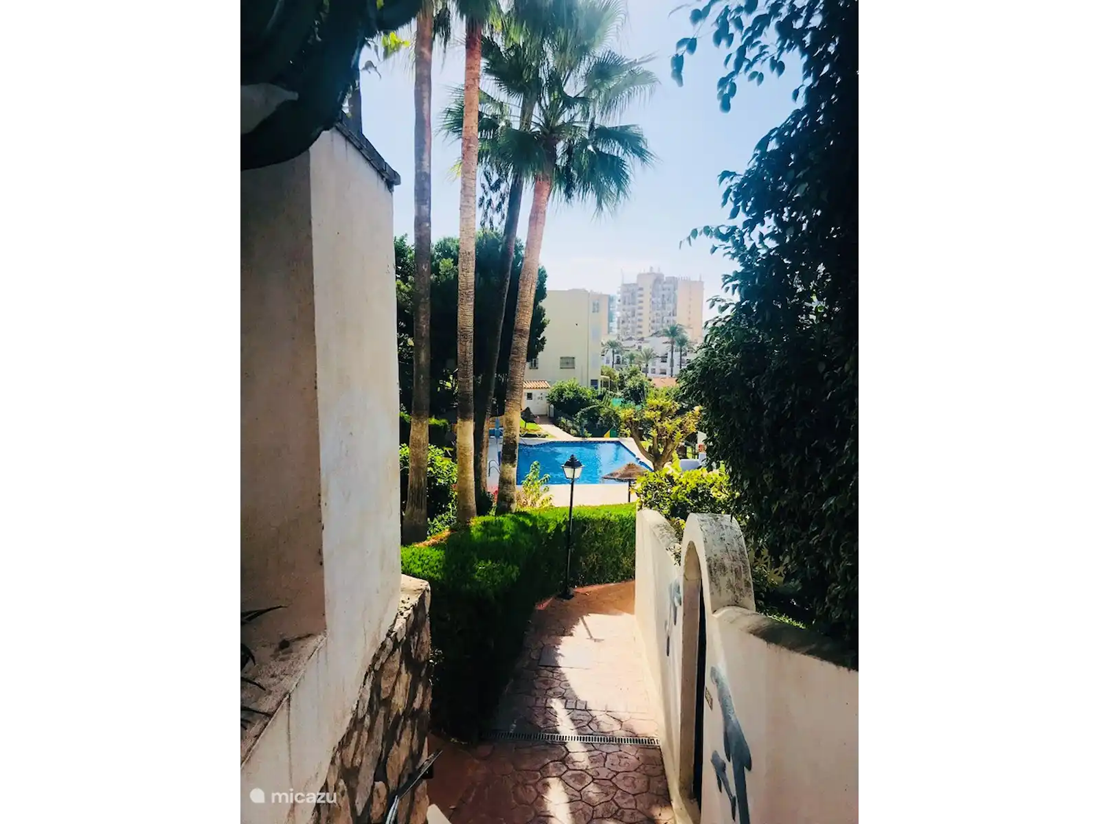 De stad Benalmadena heeft veel straten die min of meer steil zijn. De toegang tot de woning is dus óf via één van deze hellende straten, óf via de trap in de woning zoals op één van de foto’s in de advertentie.