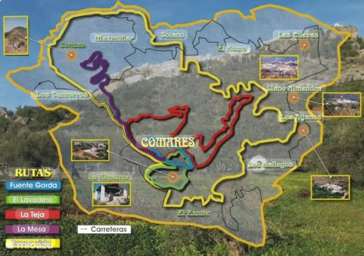 Deze charmante villa ligt verscholen in het groene heuvellandschap bij Comares, een schilderachtig dorpje vol karakter. Zodra je de poort binnenstapt, ontvouwt zich een kleurrijke tuin met palmen, bloemen en verborgen hoekjes om te ontspannen. Alles draait hier om rust, ruimte en sfeer.