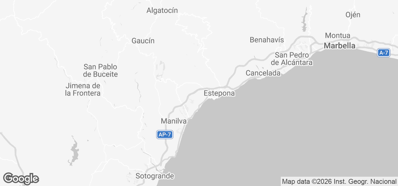 De ligging is ideaal: rustig en groen, maar toch dichtbij alles. Binnen 5 minuten sta je op het strand, het gezellige centrum van Estepona bereik je in circa 10 minuten, en Marbella en Puerto Banús liggen op slechts 20 minuten rijden. Golfliefhebbers zitten hier helemaal goed met de Valle Romano Golfbaan om de hoek.