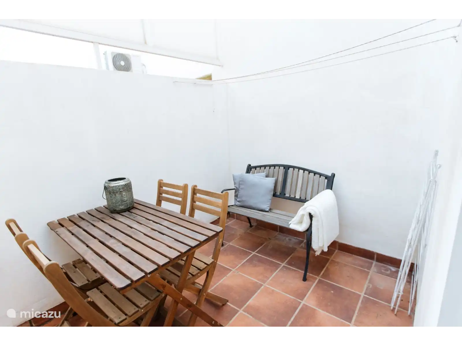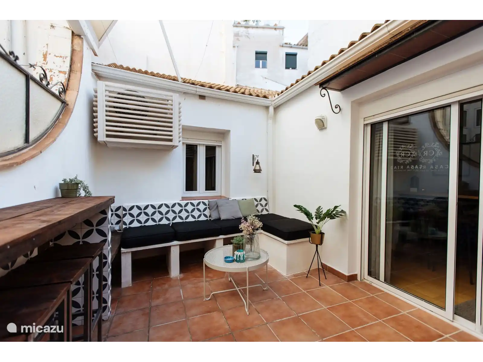 Het appartement biedt alles wat je nodig hebt voor een ontspannen verblijf. Casa Riad is voorzien van een ruime privé patio waar je in alle rust kunt genieten van je ochtendkoffie of een goed boek in de namiddagzon. De gezellige woonkamer heeft een comfortabele zithoek en een flatscreen-tv. De volledig uitgeruste keuken bevat een koelkast, oven, vaatwasser en een koffiezetapparaat. Dit is ideaal om zelf een heerlijke maaltijd te bereiden met verse producten van de lokale markt. Er zijn twee ruime slaapkamers en een moderne badkamer met een douche. Handdoeken en beddengoed worden uiteraard verzorgd, zodat je meteen van je verblijf kunt genieten zonder zorgen.