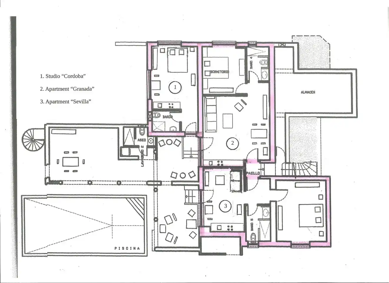 Ieder appartement heeft zijn eigen gereserveerde parkeerplaats op het afgesloten terrein. Rondom het zoutwater zwembad zijn voldoende ligbedden en parasols. Verder heeft ieder appartement zijn privé zitje maar er zijn ook diverse andere zitjes voor iedereen, overdekt of aan de grote tafels onder de kastanje houten pergola met een barbeque welke je kunt gebruiken. Er is een honestybar waar u drankjes, ijsjes en snacks kunt kopen als u bij het zwembad of op terras aan het genieten bent en de deur niet uit zou willen. Ook is er een informatiemap met allerlei info voor restaurants, excursies etc., er zijn spelletjes, strandspullen om mee naar strand te nemen en diverse leesboeken te leen. De luxe studio en appartementen zijn allen voorzien van een keuken met 4pits kookplaat, oven, magnetron, koelkast met vriesvakje, Senseo koffie apparaat, waterkoker, broodrooster, citruspers en alle nodige keukengerei; de beide appartementen, (Granada en Sevilla genaamd) zijn ook voorzien van een vaatwasser. De badkamer is voorzien van toilet, wastafel en ruime inloopdouche. Vanzelfsprekend is er WiFi binnen maar ook buiten op het terras en bij het zwembad. De tv is voorzien van diverse TV kanalen, Nederlands, Duits, Engels, Frans, Spaans en nog veel meer! Ook kunnen wij voor u een Airport Shuttle, vervoer van en naar de Luchthaven Malaga verzorgen tegen een vergoeding, wanneer u geen auto zou willen huren tijdens uw verblijf.