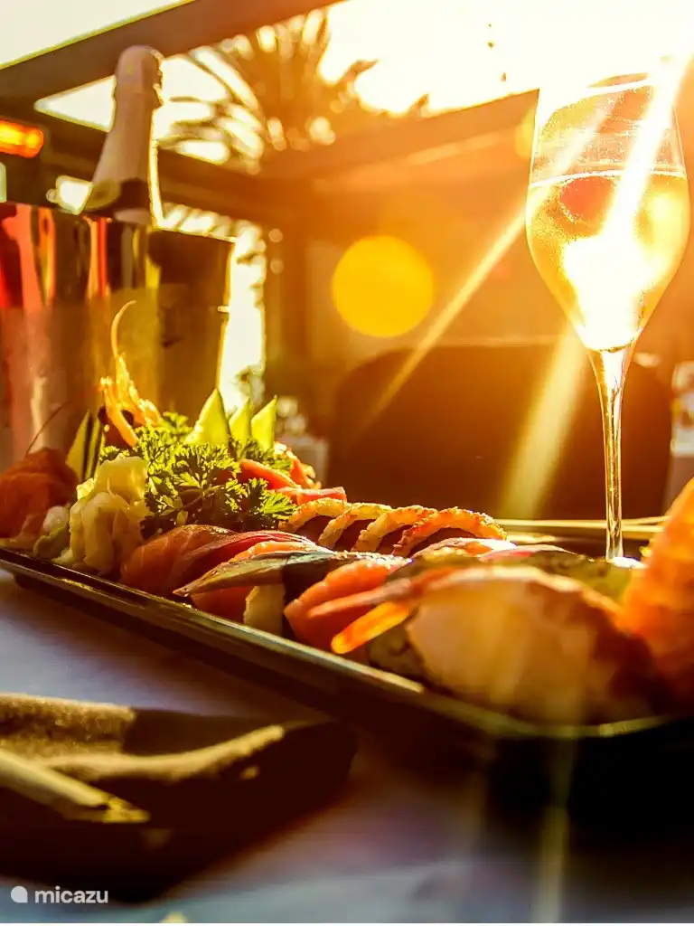 Via de lift bereikt je op de 3 etage de eigen ingang. Het -airconditioned- penthouse beschikt over 2 slaapkamers, 2 badkamers, beddengoed, handdoeken, een flatscreen-TV met streamingdiensten, een eethoek en een volledig uitgeruste, moderne keuken. De rolluiken in de woonkamer kunnen elektrisch bediend worden. De 2ruime terrassen beschikken over buitenmeubilair, zoals een bartafel, eettafel, fauteuils en een 2 pers. sun bed plus een BBQ. Op beide terrassen kun je van zon of schaduw genieten d.m.v. de elektrische zonneschermen.