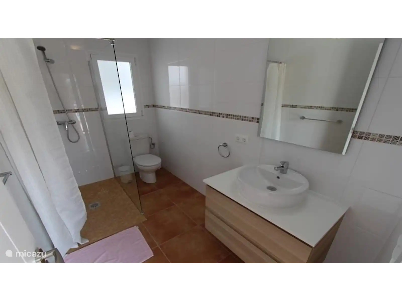 Via een privé-parkeerplaats die bij het huis hoort loopt u via een trap naar de hoofdingang. De villa is gebouwd op 2 verdiepingen. De woonkamer heeft grote ramen en er is een open keuken met een eettafel en stoelen. De woonkamer heeft airconditioning, een tv met enkele Nederlandse kanalen en biedt toegang tot een terras met tafel en stoelen. Vanuit dit terras is er direct toegang tot het privé zwembad. De keuken is volledig uitgerust met alle moderne gemakken en op dit niveau zijn er 2 aparte slaapkamers (beide met airco) en een doucheruimte met toilet.