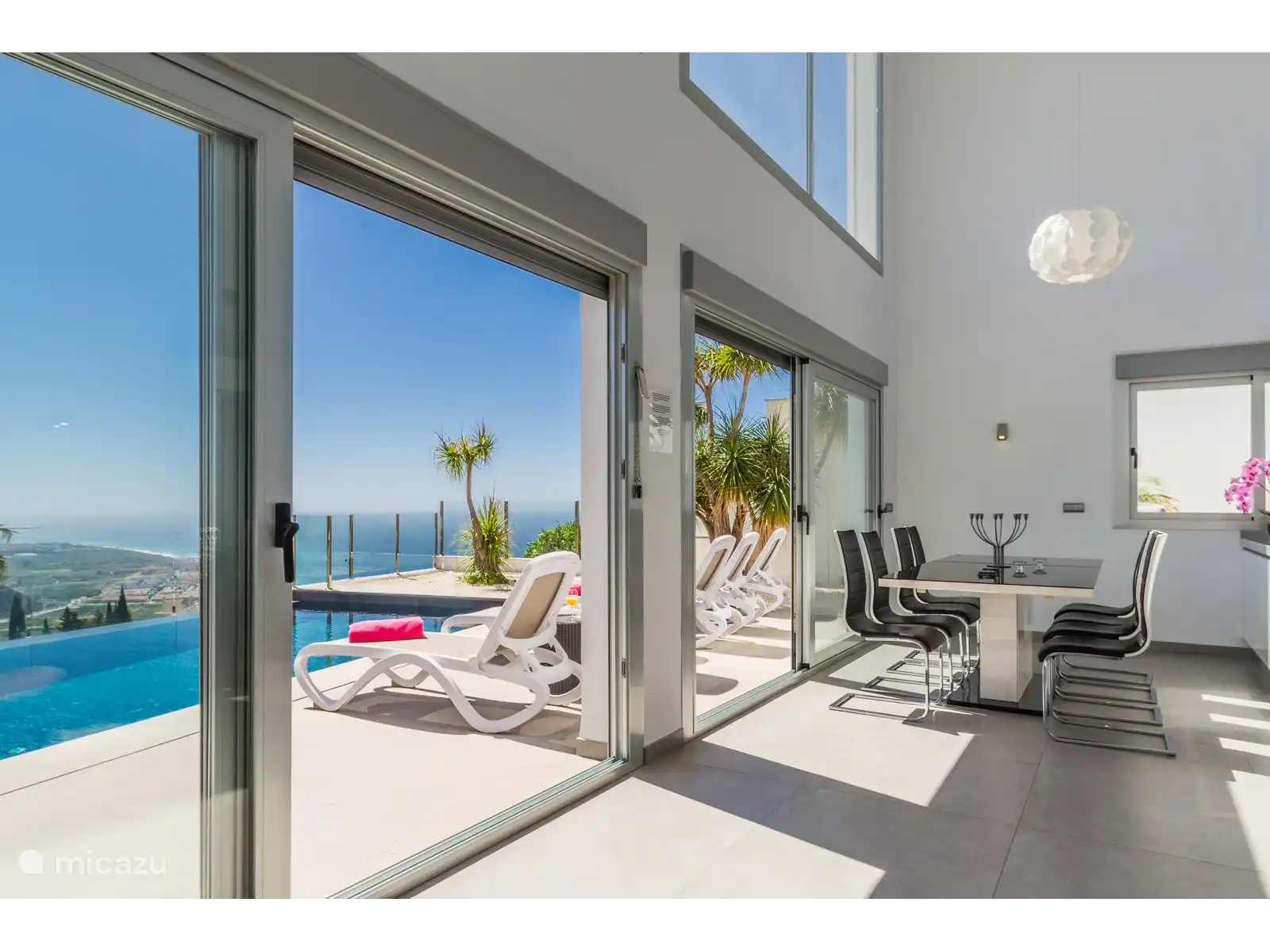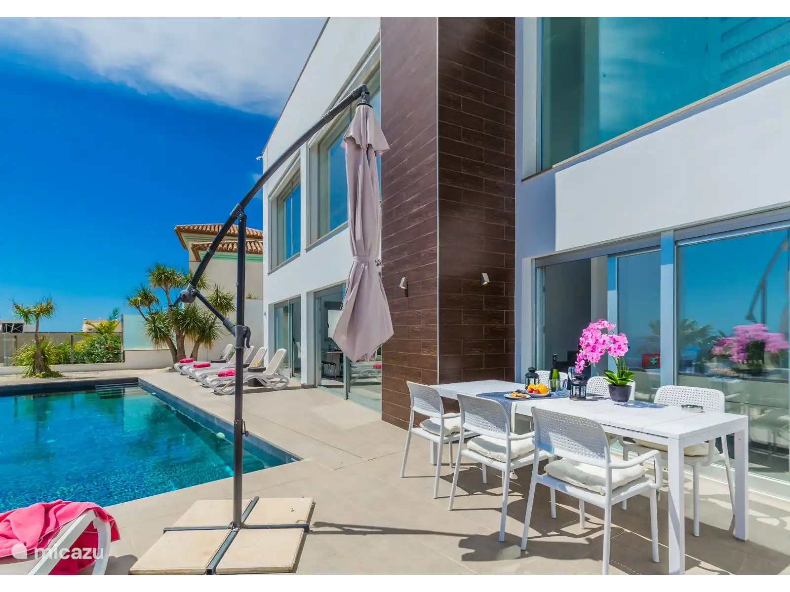 Op het terras is voldoende ruimte om te genieten van het zwembad, de zon, het uitzicht en om heerlijke maaltijden te nuttigen. Er zijn 6 ligbedden, een bank en een eettafel met stoelen. Ook is er een gas barbecue in de villa aanwezig. De villa heeft centrale warme en koude airconditioning, zodat uw comfort het hele jaar door is gegarandeerd.