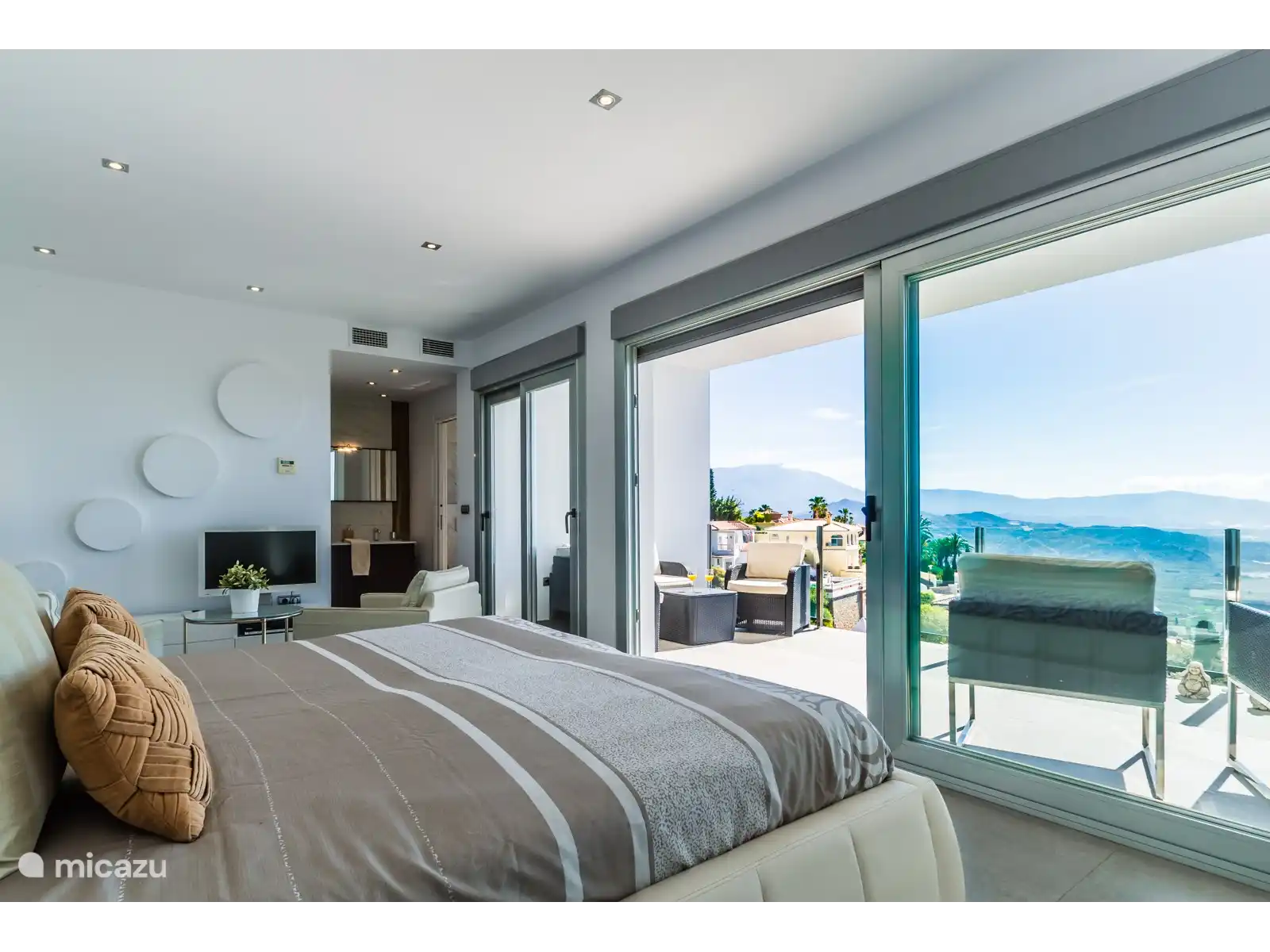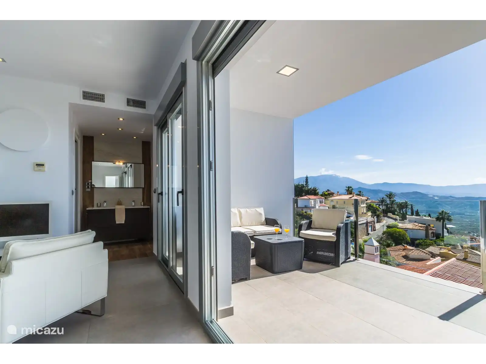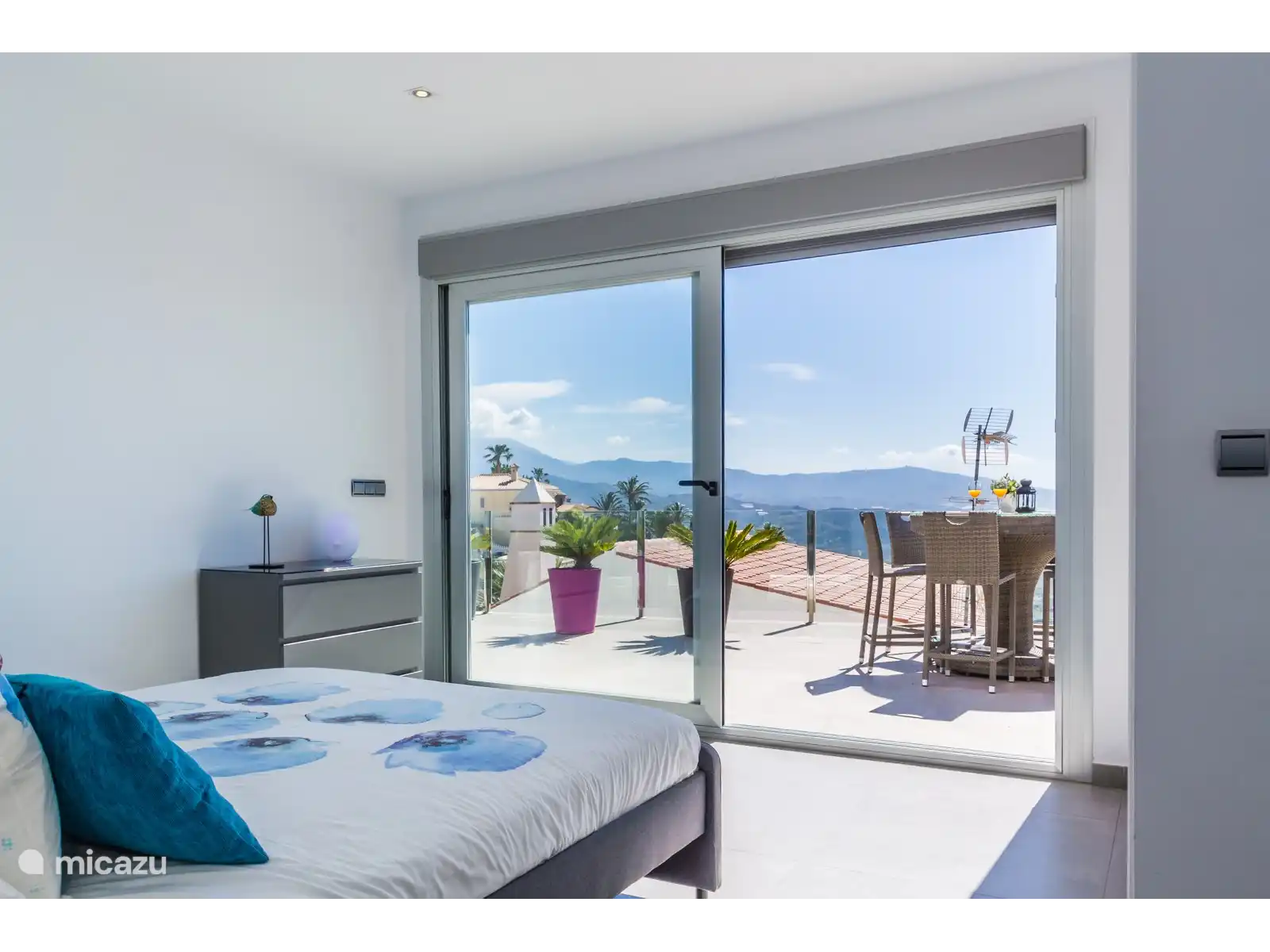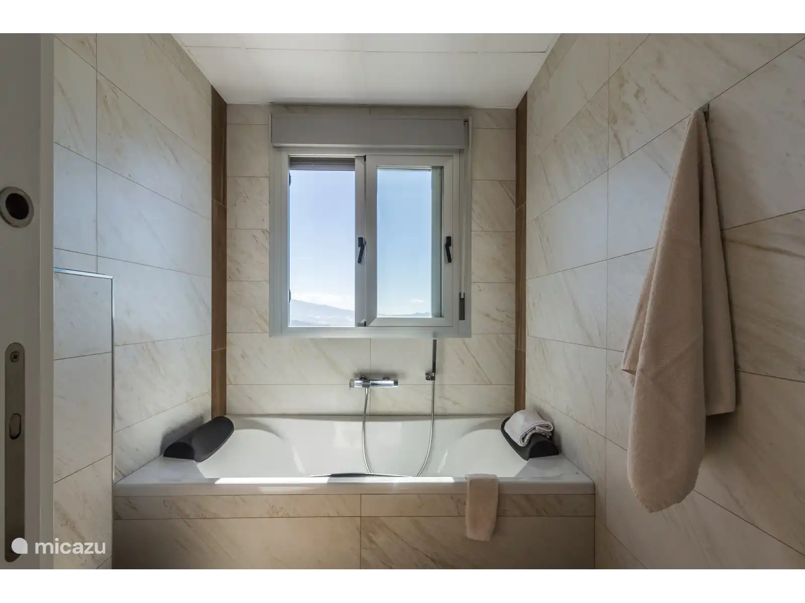 Op straatniveau is er off-road parking voor meerdere auto's. Als u de villa binnenkomt, zult u versteld staan van het uitzicht op de zee, de bergen, die een deel van het jaar met sneeuw bedekt zijn, en het Moorse kasteel van Salobrena welke 's nachts verlicht is. Het is net een ansichtkaart. De ruime hoofdslaapkamer bevindt zich op entree niveau. Deze slaapkamer heeft een zithoek met 2 comfortabele fauteuils en een televisie plus dvd-speler. Aan de hoofdslaapkamer grenst een overdekte veranda, de ideale plek om te genieten van uw ochtendkoffie en de zon terwijl u geniet van het prachtige uitzicht. Deze slaapkamer heeft een eigen badkamer met dubbele wastafel, een ruim bad en een inloopkast.